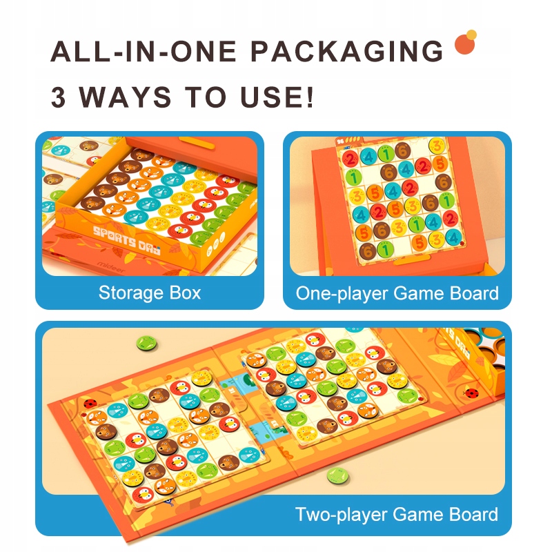 Sudoku jest umieszczone w praktycznym opakowaniu, dzięki czemu dzieci nie zgubią poszczególnych elementów.