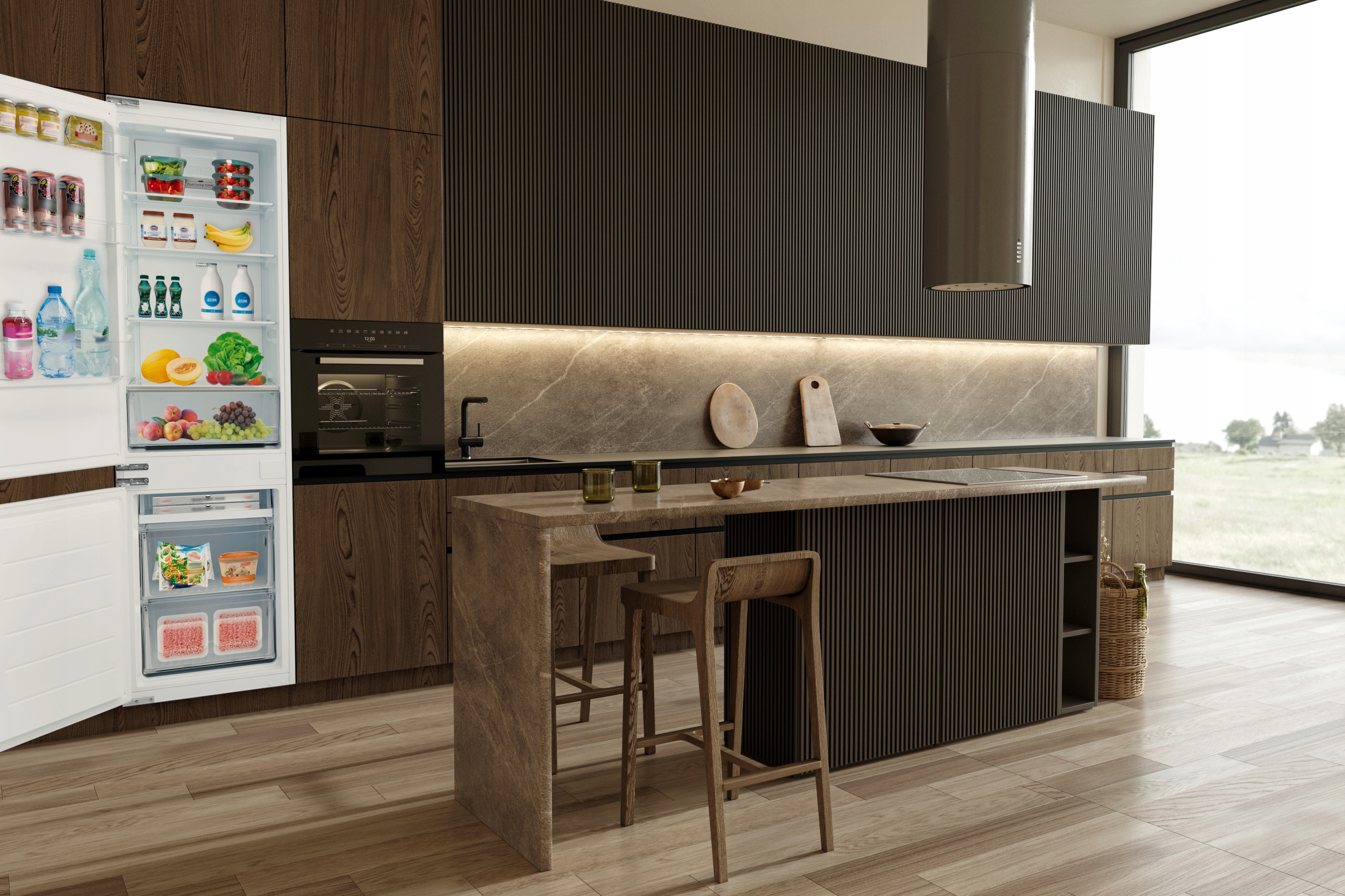 Chłodziarko - zamrażarki do zabudowy są idealnym rozwiązaniem gdy zależy nam na utrzymaniu jednolitego ciągu mebli kuchennych, ale należy pamiętać że sterowanie nimi jest możliwe dopiero po otwarciu drzwi. Parametrami nie odbiegają od chłodziarek wolnostojących i również oferują przechowywanie produktów w rozmaitych strefach, szufladach i pojemnikach.