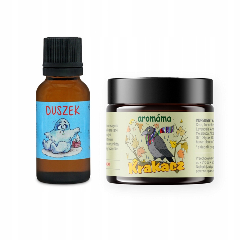 Zestaw Olejek Duszek i Balsam Krakacz to idealne połączenie dwóch wyjątkowych produktów, które zapewnią kompleksową pielęgnację. Olejek Duszek przeznaczony jest do pielęgnacji nosa i wykorzystywany jest w szczególności podczas zimnych pór roku. Krakacz to wyjątkowy balsam do wcierania. który doskonale odżywia i pielęgnuje skórę. Oba produkty są odpowiednie dla dzieci od 6 miesiąca życia i dla całej rodziny!