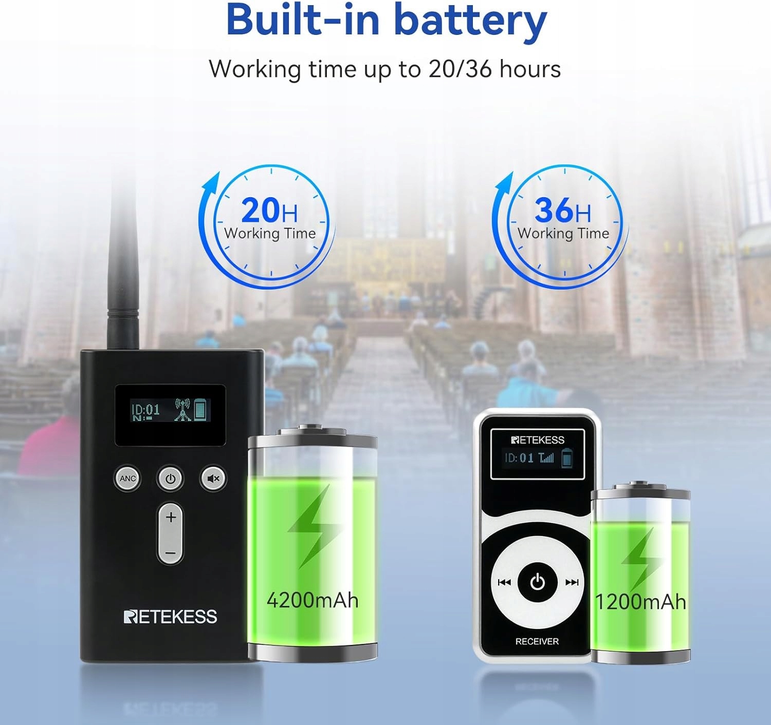 Беспроводная аудиогидная система T130P имеет встроенную перезаряжаемую литиевая батарея, которая позволяет передатчику работать до 20 часов без подзарядки, а приемнику-до 36 часов. Это увеличенное время автономной работы обеспечивает непрерывное использование в течение дня, что это делает его идеальным для однодневных поездок или дальних поездок без необходимости частого зарядки.