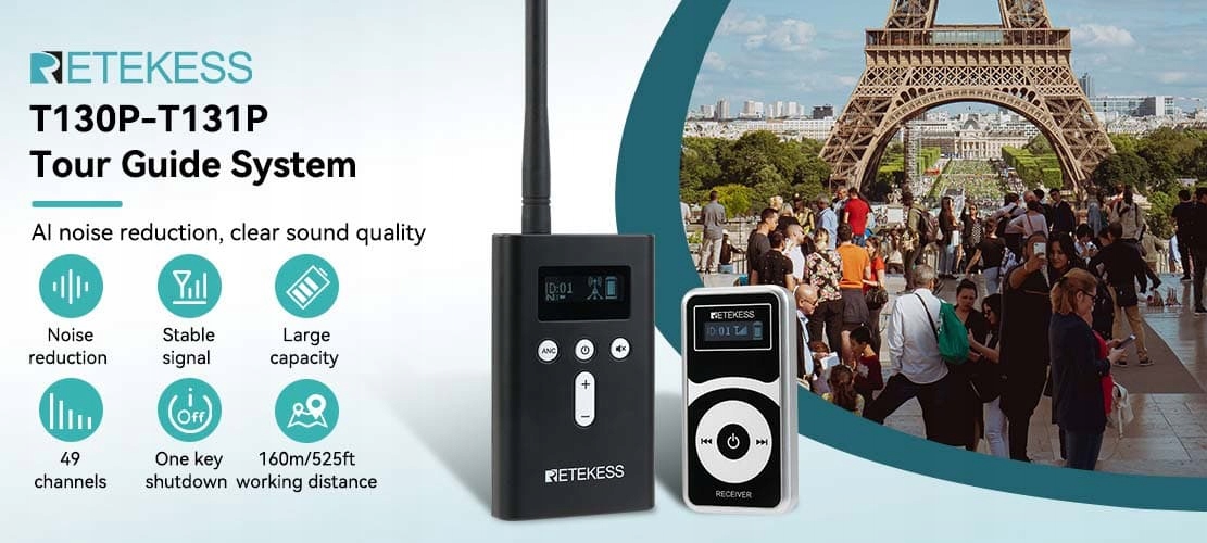 Направляющее оборудование T130P он использует передовую технологию шумоподавления с регулируемыми уровнями (1-4). Сие гибкость позволяет системе эффективно фильтровать фоновый шум для четкого, беспроблемногоопыт прослушивания для туристов в шумной обстановке, такой как переполненные достопримечательности туристический.
