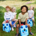 Walizeczka Trunki jest lekka, bezpieczna i wytrzymała. Dodatkowo jest bardzo pakowna (18 litrów), co umożliwia Twojemu dziecku zabranie ze sobą zabawek, gier, książeczek i dodatkowych ubranek. Posiada pasek służący do noszenia na ramieniu lub do ciągnięcia. Rogi walizeczki służą do trzymania się.