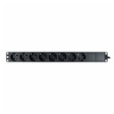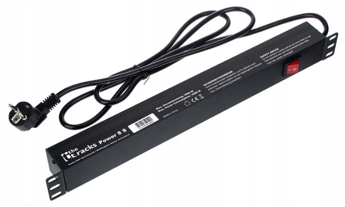 the t.racks Power 8 S to profesjonalna listwa zasilająca do montażu w szafach rack 19", zapewniająca stabilne i bezpieczne zasilanie dla urządzeń w serwerowniach, studiach nagraniowych oraz instalacjach scenicznych. Posiada 8 gniazd umieszczonych z tyłu, co ułatwia organizację okablowania. Wyposażona jest w dwubiegunowy, podświetlany przełącznik, który umożliwia łatwe sterowanie zasilaniem. Obracalne kątowniki montażowe pozwalają na elastyczny montaż w różnych konfiguracjach. Długość kabla zasilającego 2 m zapewnia wygodne podłączenie do sieci. Kompaktowa konstrukcja o wysokości 1U sprawia, że listwa doskonale sprawdzi się w standardowych szafach rack.