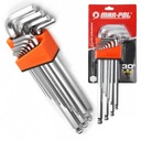 Idealny zestaw kluczy dwustronnych typu L , który umożliwia pracę w trudno dostępnych miejscach. Zestaw zapakowany w praktyczną i poręczną zawieszkę z tworzywa, na której są wybite rozmiary imbusów co ułatwia wyszukanie odpowiedniego rozmiaru.