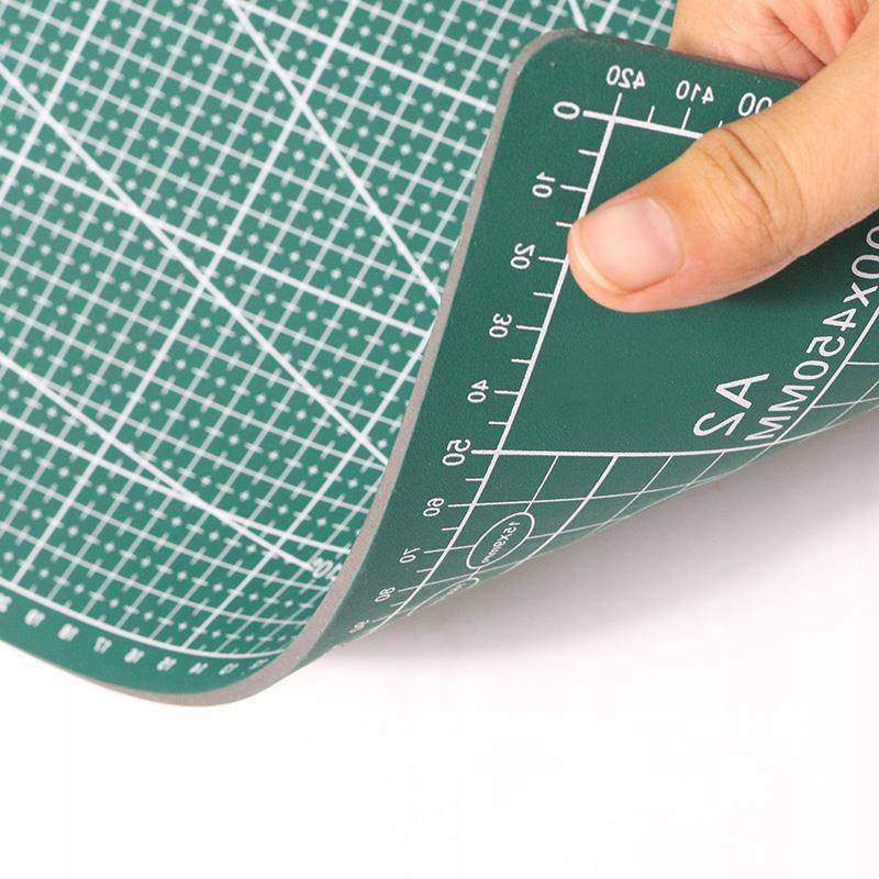 После разреза он все еще остается гладким. С обеих сторон у него есть слой, на котором была напечатана сантиметровая градация по вертикали и горизонтали, отмечены углы, транспортиры, параллельные линии и фигуры.