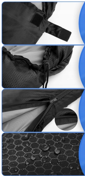 Dzięki pogrubionej wyściółce w kluczowych obszarach – głowy, klatki piersiowej i stóp – możesz spać spokojnie, bez ryzyka niewygodnych ucisków. Dwukierunkowy zamek błyskawiczny umożliwia łatwą obsługę, a zabezpieczenie na rzepy zapobiega przypadkowemu rozpięciu.