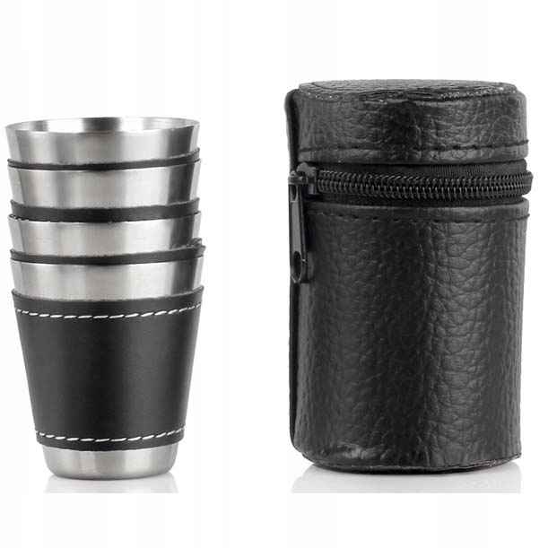 Turystyczny zestaw kieliszków wykonanych ze stali nierdzewnej zadowoli z pewnością amatorów mocniejszych trunków.