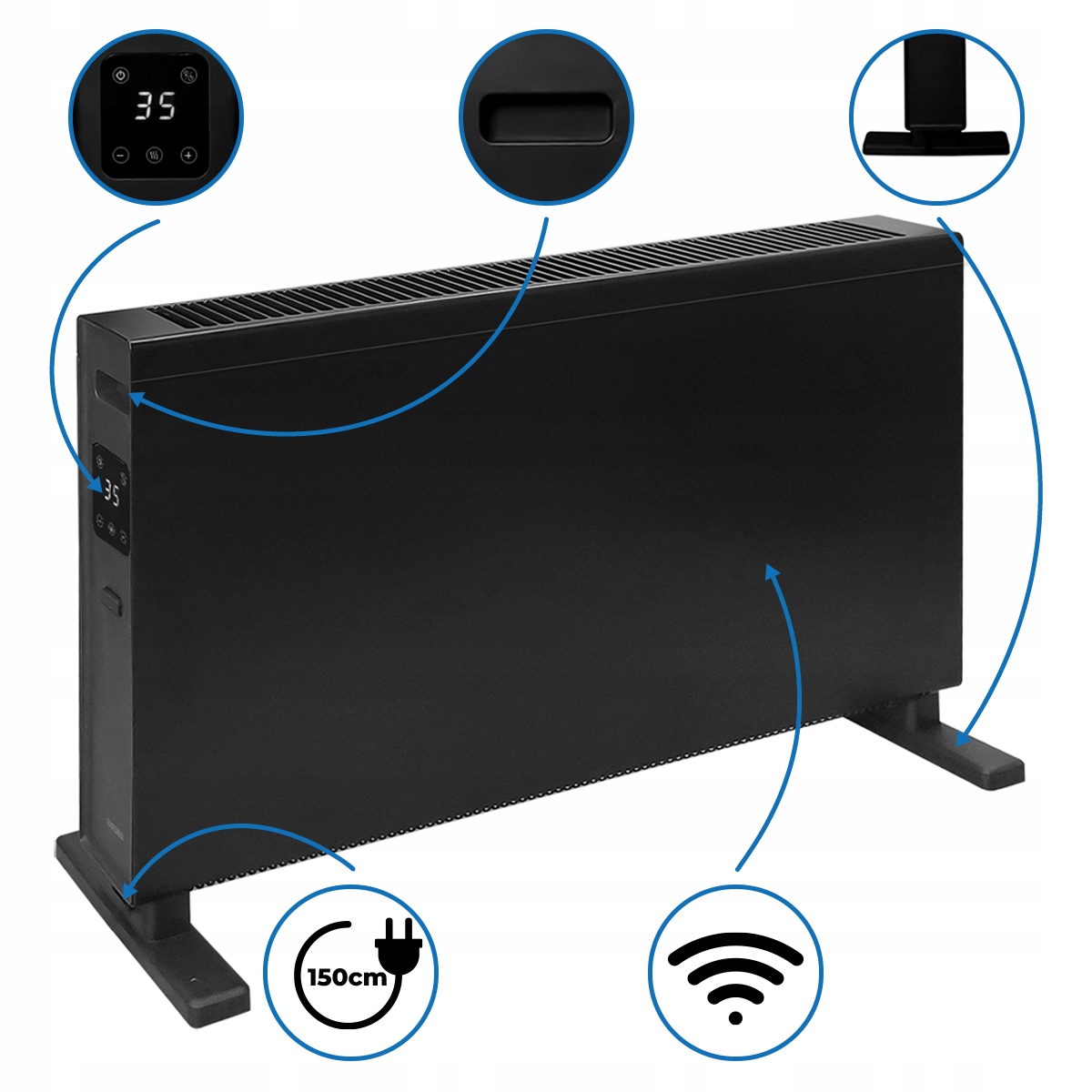 Umożliwia zaprogramowanie trybu pracy urządzenia dla każdego dnia tygodnia indywidualnie. Funkcja ta zapewnia pełną automatyzację pracy grzejnika i jednocześnie oszczędność zużywanej energii. Programator dostępny w aplikacji mobilnej.