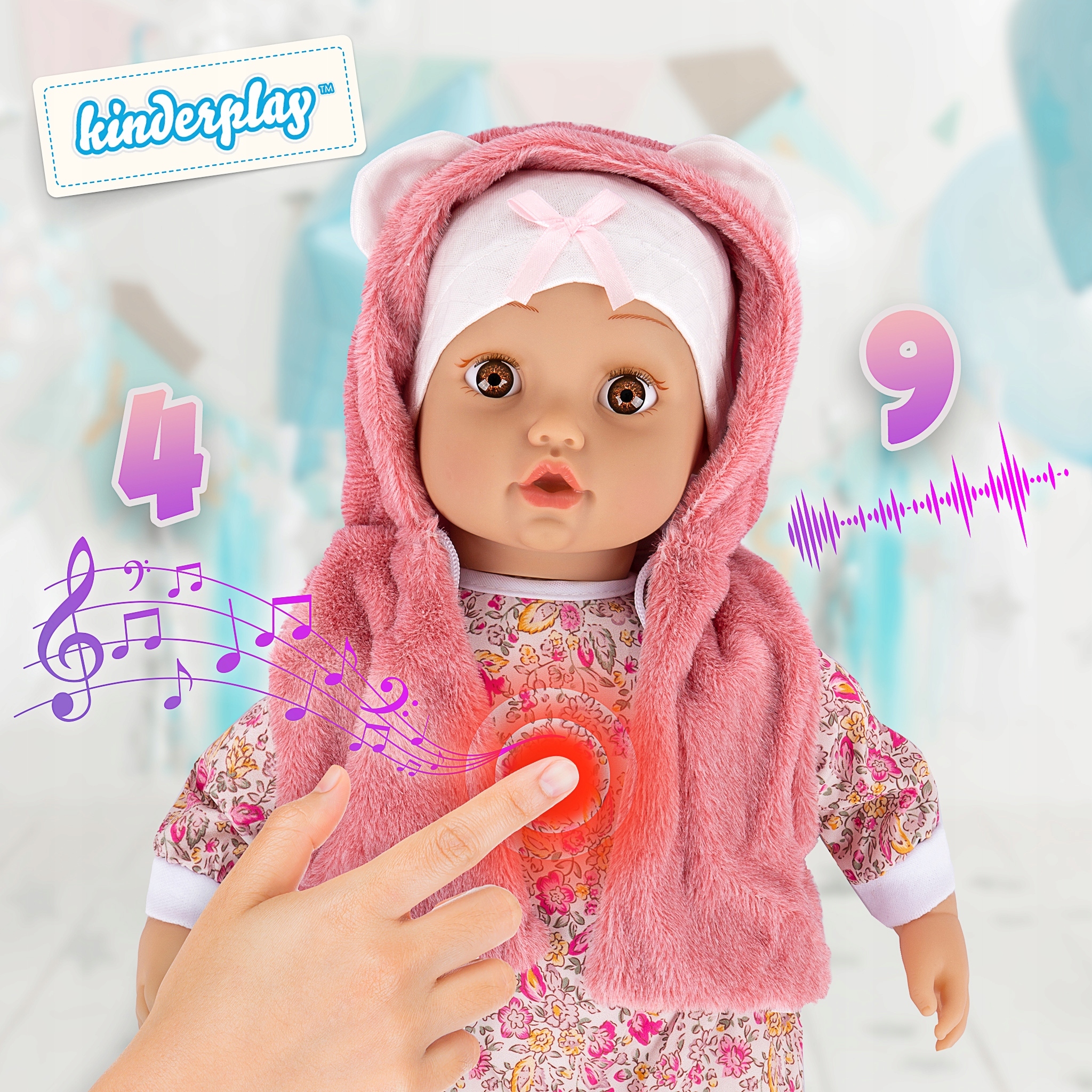 Голова, руки и ноги сделаны из мягкой резины, прикреплены к набивке мягкое туловище. При нажатии на животик малыш говорит и поет по-польски, а голос дает Клара Кметяк. Кукла сделана с большой осторожностью из очень качественных материалов. Кукла не она стоит одна.