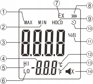 Ekran o wysokiej rozdzielczości wskazuje zmierzone wartości, co pozwala wyeliminować ewentualne przyczyny wycieków gazu lub zbyt wysokiego stężenia łatwopalnych gazów.