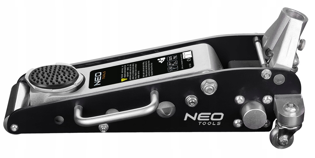 Podnośnik hydrauliczny NEO (nr ref. 11-730) typu żaba, wykonany z wysokiej jakości aluminium, zapewniającego odporność na korozję. Posiada 2-skrętne koła ze stali oraz rolkę toczną. Zakres podnoszenia do 355 mm, maksymalny ciężar 1.5 t. Podnośnik wyróżnia się zwartą konstrukcją i niewielkim ciężarem- 15,3 kg co znacznie ułatwia transport. Dzięki niskiemu profilowi nadaje się do podnoszenia aut sportowych. Zgodność z europejskimi standardami bezpieczeństwa zapewnia certyfikat CE. Gwarantem wysokiej jakości i niezawodności produktu jest certyfikat TÜV Rheinland. Marka NEO spełnia oczekiwania profesjonalistów.