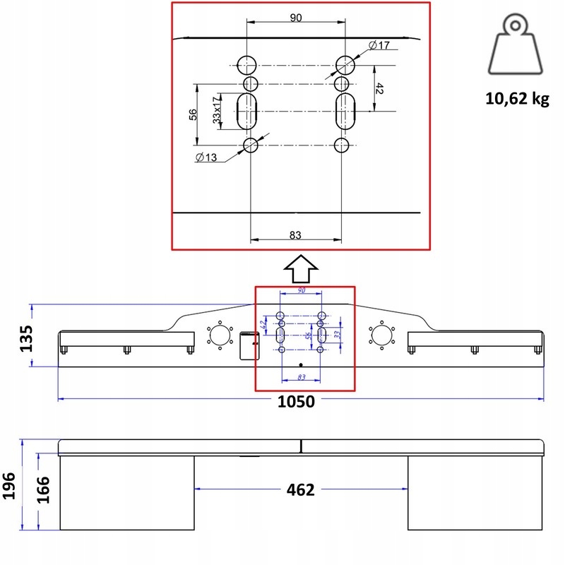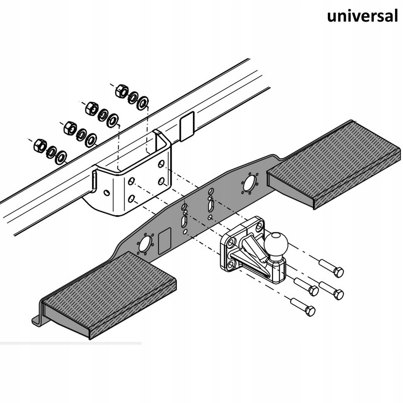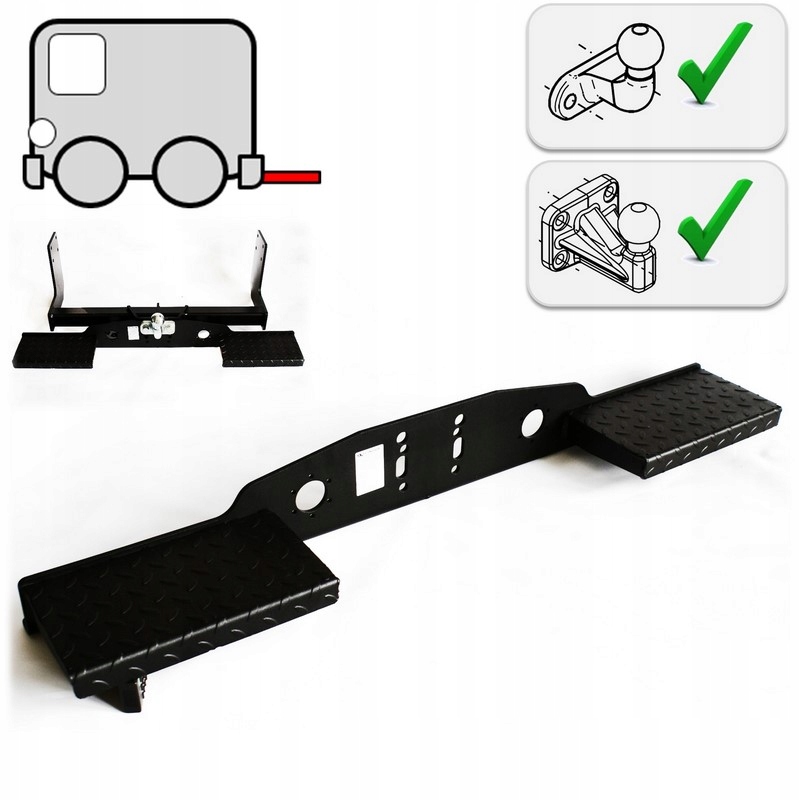Stopień haka holowniczego pasuje do wszystkich pojazdów wyposażonych w hak z kulą flanszową o rozstawie otworów zarówno 90mm jak i 83x56 mm.