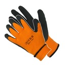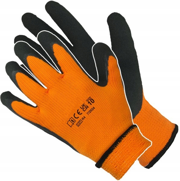 Uniwersalne rękawice ochronne wykonane z ciepłej dzianiny poliestrowej typu FROTTE powlekane lateksem. Wytrzymałe, elastyczne, dobrze dopasowują się do dłoni. Powłoka lateksowa zapewnia zręczność i pewny chwyt trzymanych narzędzi, zmniejsza wnikanie brudu.