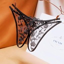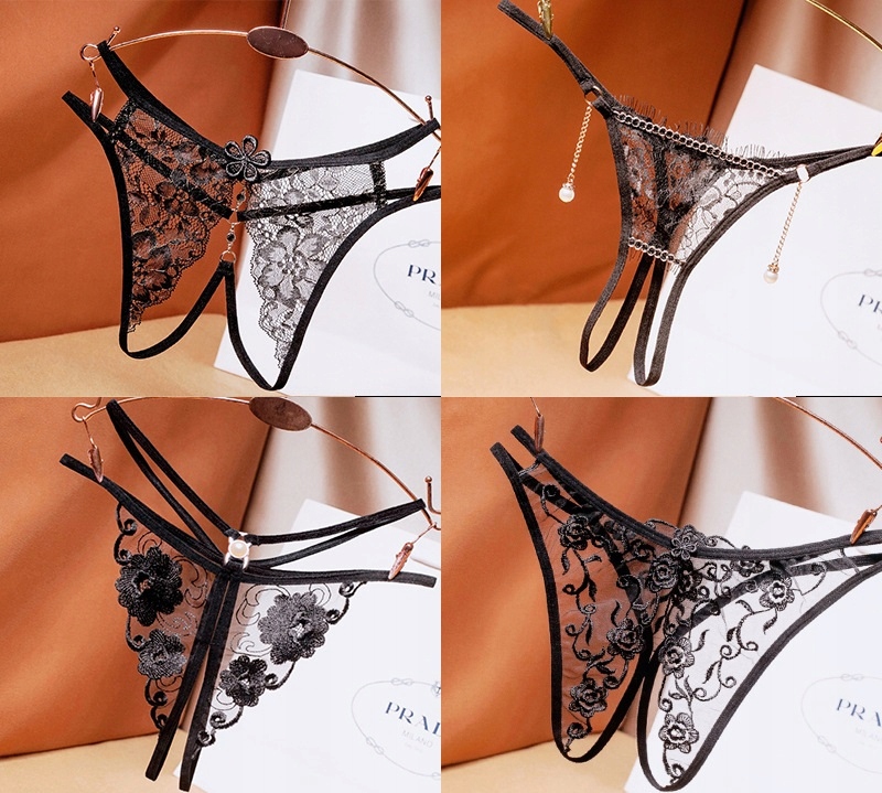 Эти тонкие и соблазнительные стринги из черного кружева выглядят невероятно сексуально. Щель в шаге от стрингов он добавляет необычную соблазнительную эстетику. Это позволит вам наслаждаться близостью без необходимости снимать нижнее белье.