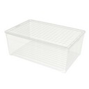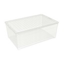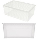 Pojemniki są przezroczyste, dzięki czemu ich zawartość jest widoczna. Będzie to szczególnie pomocne w momencie, kiedy znalezienie czegoś będzie bardzo pilne. Pudło posiada szczelną pokrywkę, która zapobiega wysypywaniu się zawartości oraz dzięki której, kurz nie dostaje się do wnętrza opakowania.
