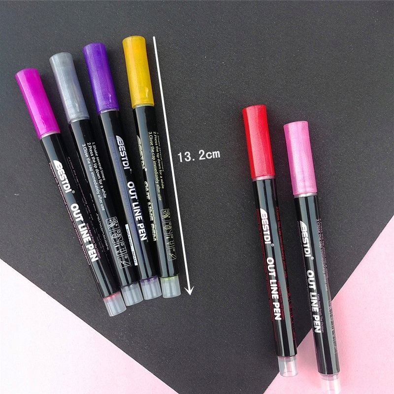Nasze markery to coś więcej niż zwykłe pisaki. Dzięki specjalnej technologii, każde pociągnięcie tworzy podwójną linię – wyrazisty metaliczny kontur otacza kolorowe wnętrze, co daje unikalny, trójwymiarowy efekt.