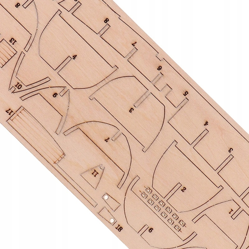 Drewniany model statku do złożenia, brak kleju oraz farb w zestawie. Rozmiar modelu po złożeniu to około : 37cm x 6,5cm 27 cm wraz z ożaglowaniem. Wszystkie elementy są precyzyjnie laserowo wycięte w drewnie.