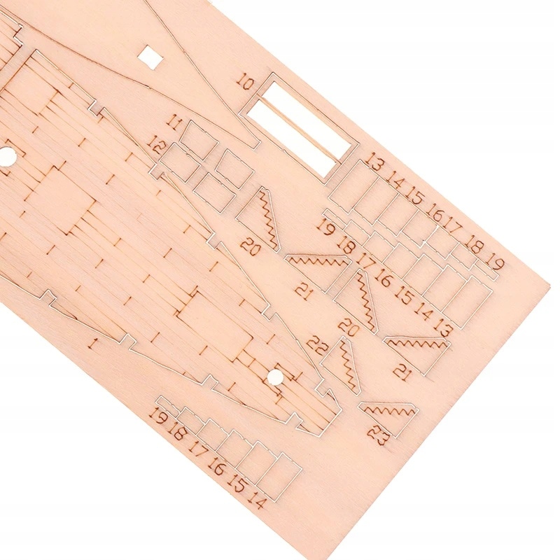 Elementy statków są wycięte w sklejce trzeba je delikatnie wyłamać i montować według instrukcji klejąc je na łaczeniach.