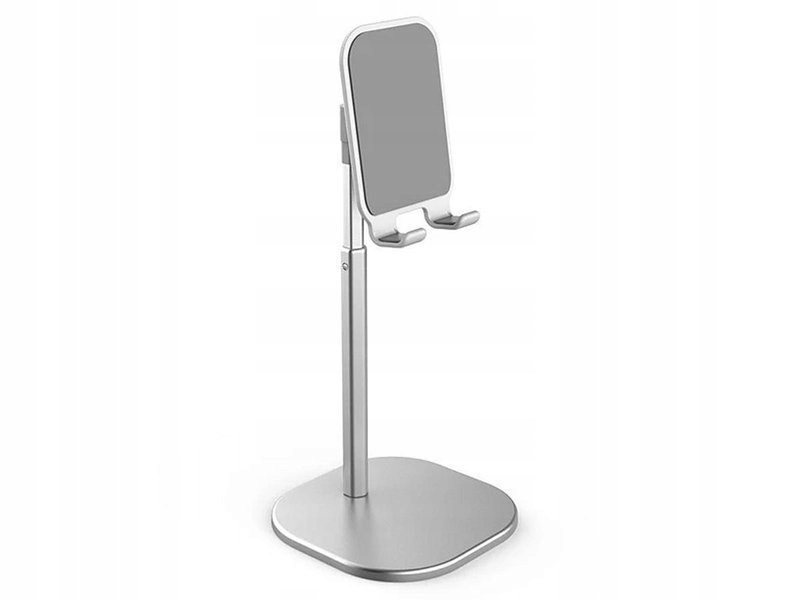 Uchwyt na telefon to wygodna i lekka podstawka, która ma za zadanie zapewnić komfort podczas korzystania ze smartfona. Podstawka została wykonana z wysokiej jakości aluminium, dodatkowo wyposażona jest w antypoślizgowe silikonowe gumki, które chronią urządzenie przed wyślizgnięciem się i niechcianym upadkiem.