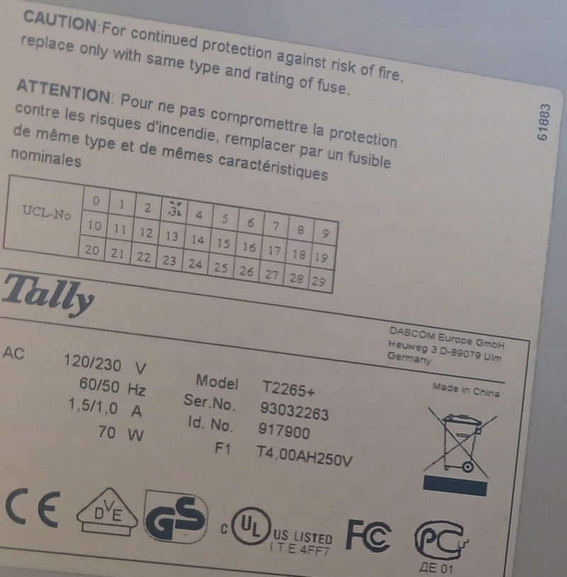 Wydajna ( heavyduty ) Drukarka igłowa Tally T2265+