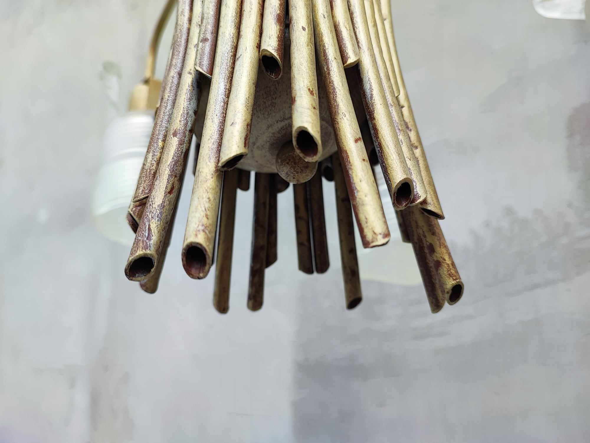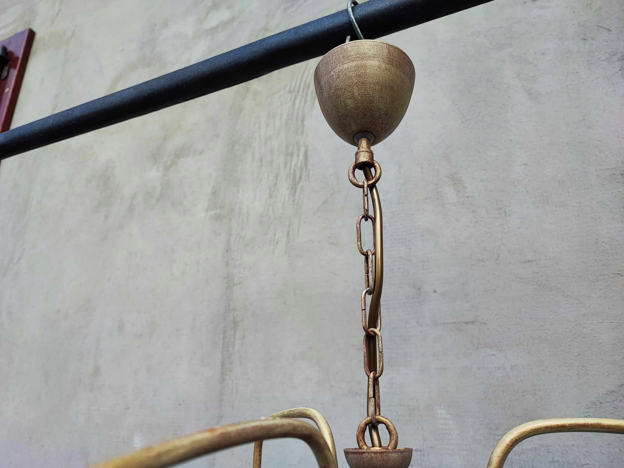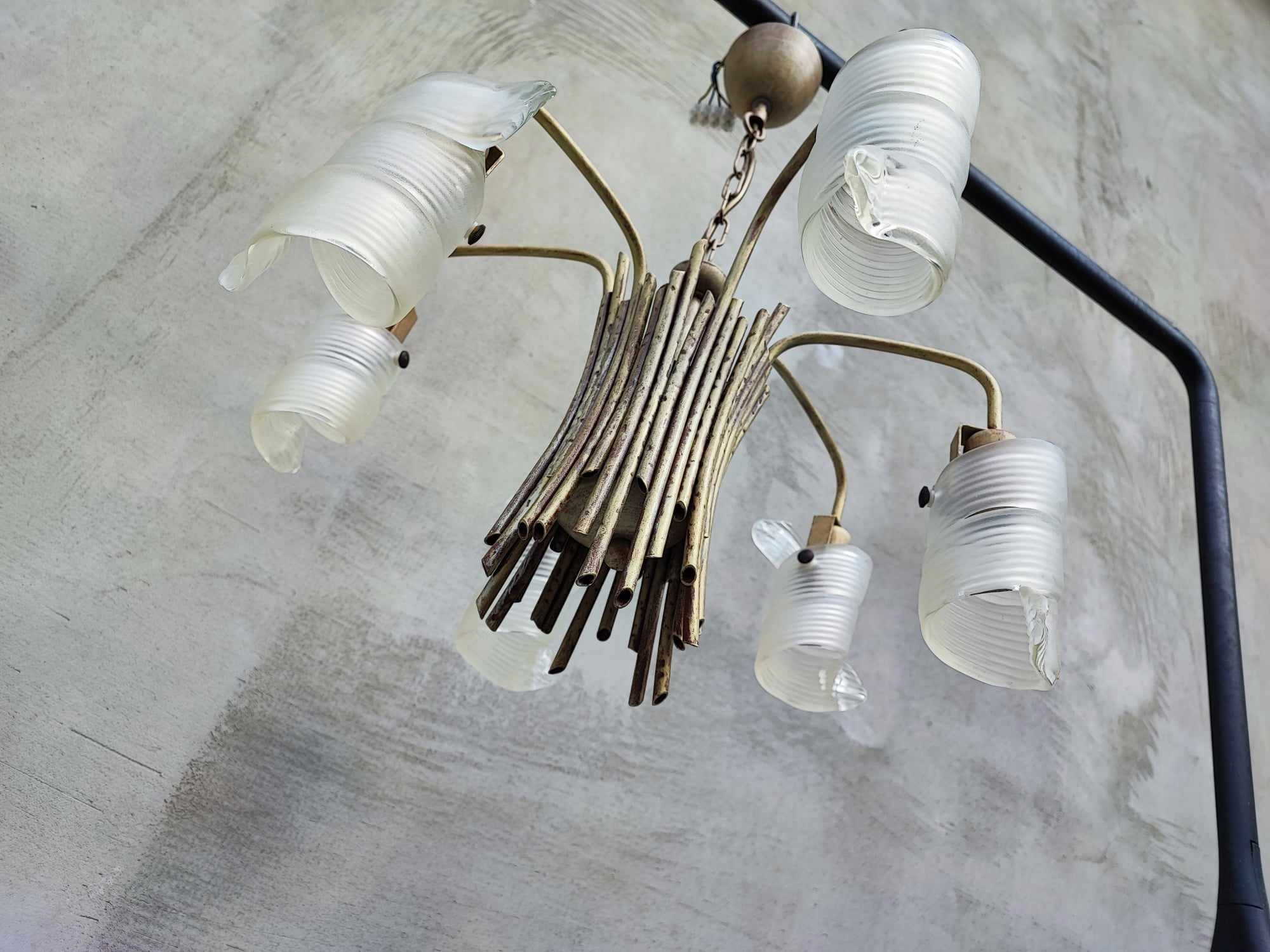 Żyrandol + 2 kinkiety,vintage lat 70-80,żyrandol i kinkiety-metalowe w kształcie patyczków z drewna,klosze szklane,wymiary-wys.57 cm.rozpiętość-ok.50 cm.2 kinkiety mają po szer.13 cm.wys.27 cm.gł.25 cm.,oprawki na żarówki E27,idealny dla designera z tych lat,na wystrój,do filmu itp.,na innych moich aukcjach znajdziesz inne żyrandole,kryształki,aplikacje,kilimy,szyldy klamki,szyldy do mebli,karnisze,klosze oraz wszystko co ci potrzebne do lamp,lampek,żyrandoli,kinkietów,lamp naftowych,zobacz inne moje aukcje,wystawiam ok.5000 aukcji,wszystko jak na zdjęciach