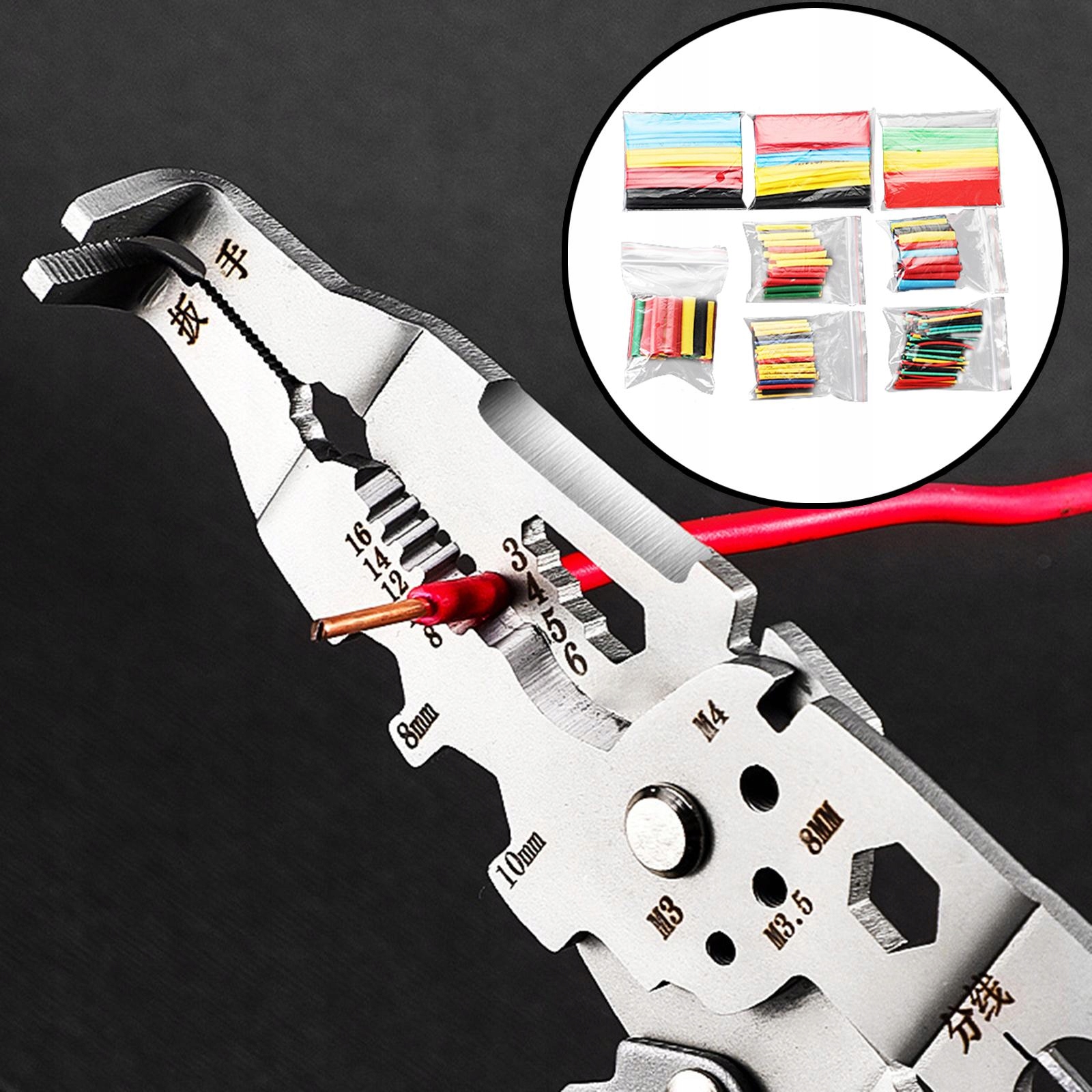 Zestaw do cięcia kabli elektrycznych ze ściągaczem izolacji i rurką termokurczliwą 328 Rurka termokurczliwa