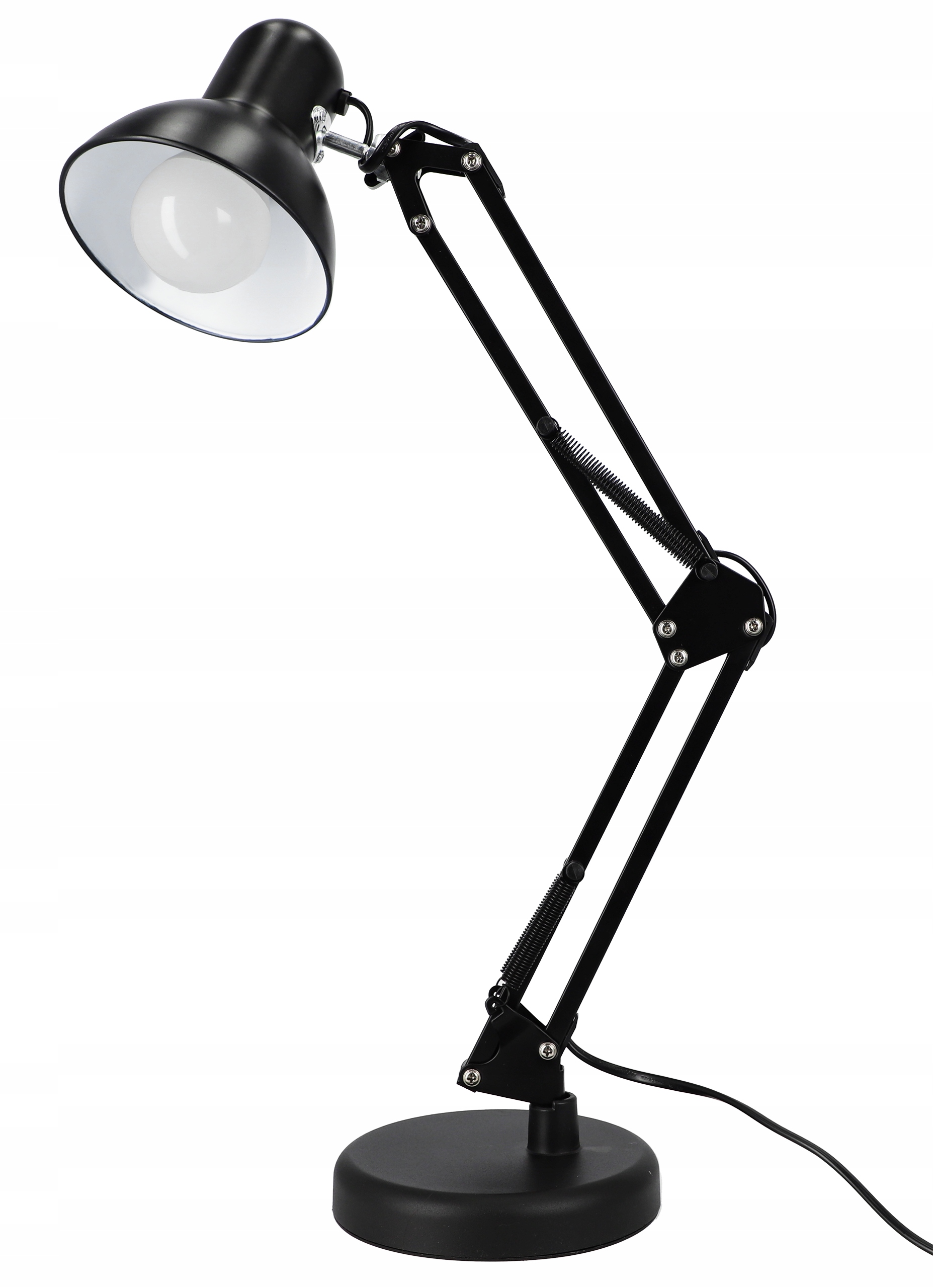 Można ją obracać o 360 stopni dzięki obrotowemu kloszowi, a jej wysokość jest regulowana za pomocą ramion ze sprężynami.Solidna metalowa rama oraz ciężka podstawa zapewniają stabilność.