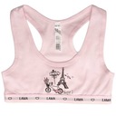 Uroczy, krótki dziewczęcy top wykonany z bawełny w modnym różowym kolorze z drobną ozdobną aplikacją.