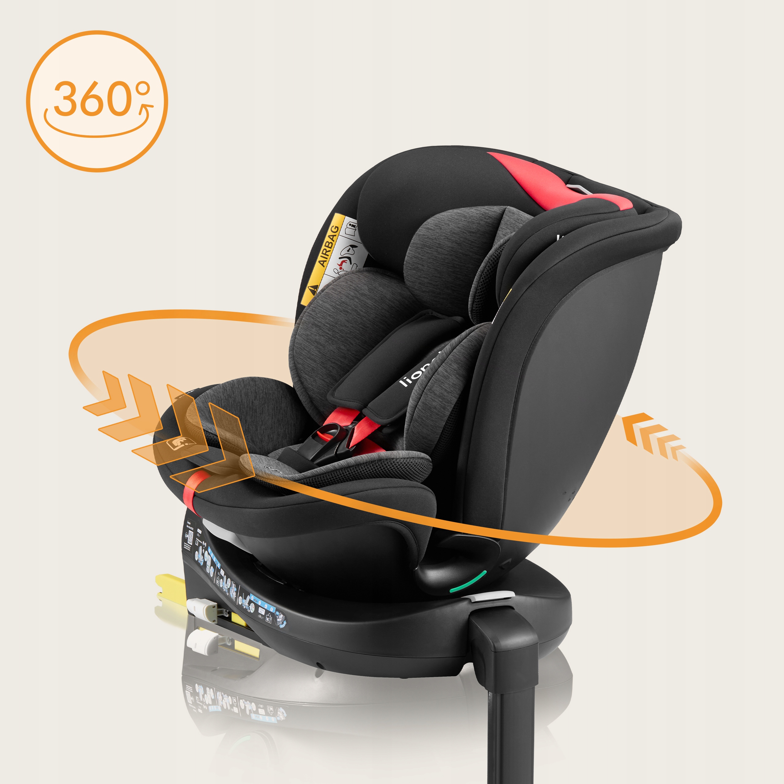 Wkładanie i wykładanie malucha z fotelika staje się o wiele łatwiejsze, podobnie jak prawidłowe zapinanie pasów. Fotelik z bazą 360° umożliwia obrót siedziska dookoła własnej osi bez konieczności wypinania z prowadnic.