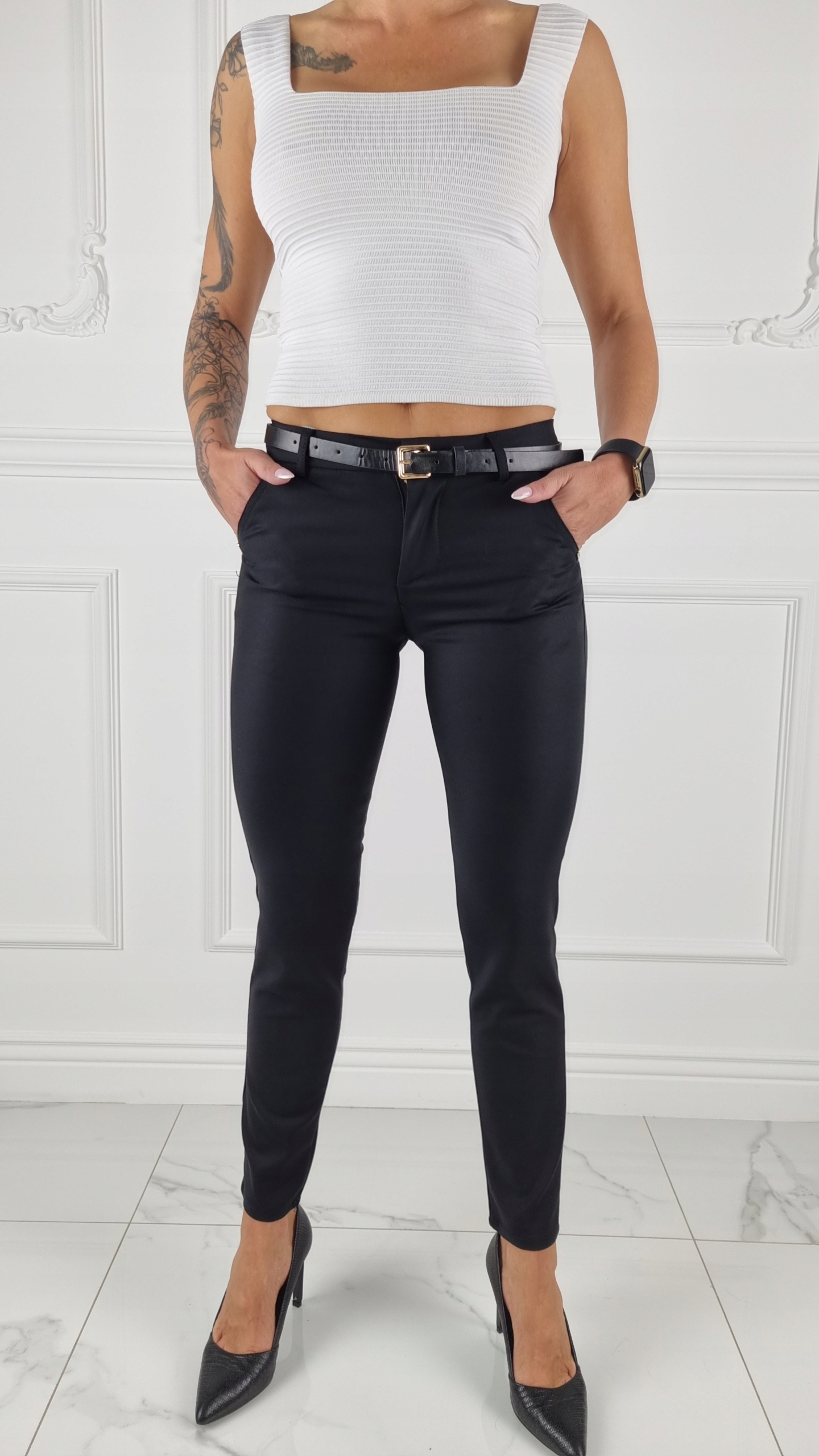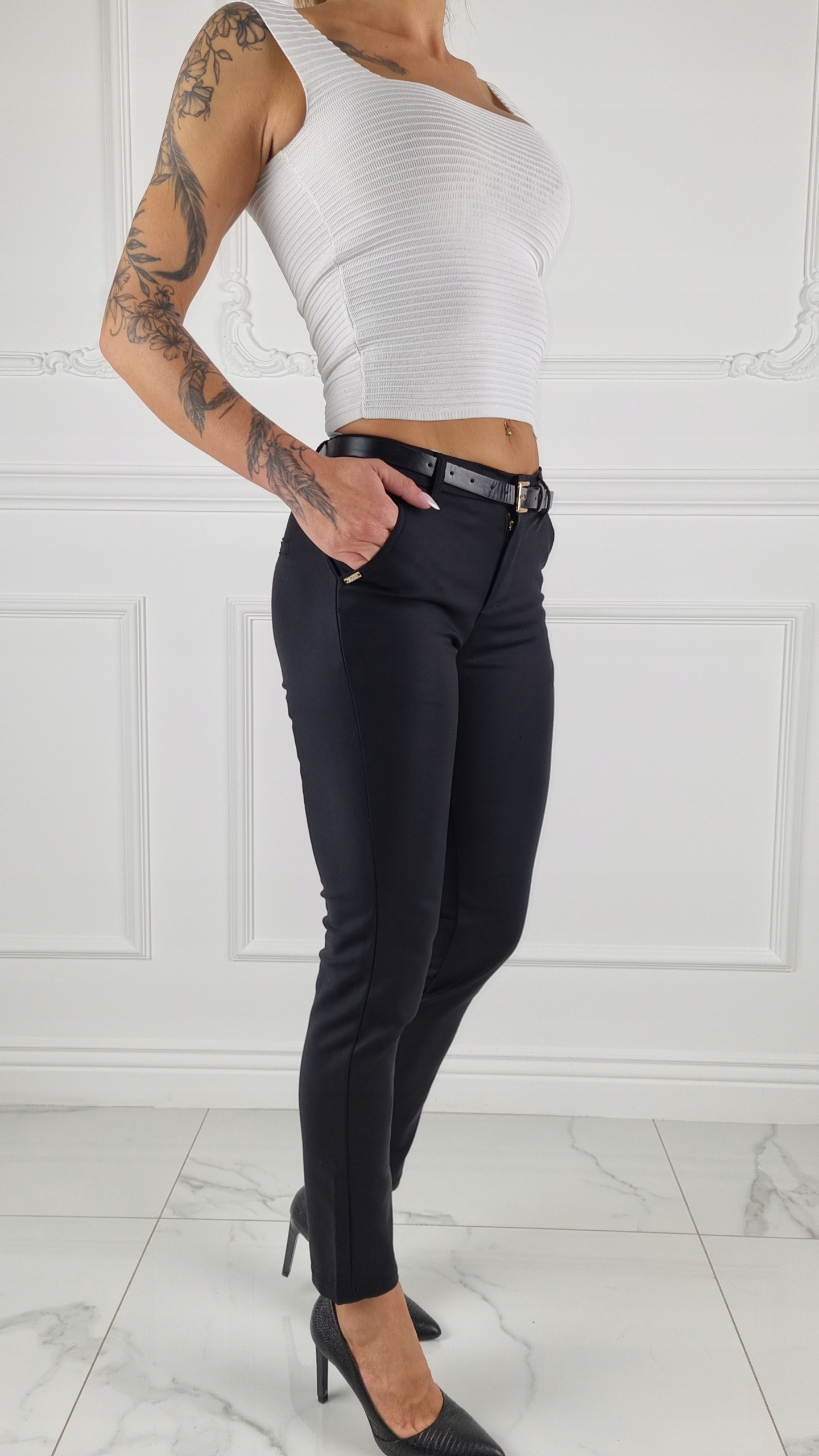 Eleganckie klasyczne spodnie cygaretki , posiadają wysoki stan. Świetne w połączeniu ze szpilkami, dzięki swojej uniwersalności, pasują niemal do każdej stylizacji. Elastyczny materiał podkreśla kobiecą sylwetkę. Spodnie są dopasowane, rozciągają się. Podkreśl swoje kobiece kształty! Spraw, by Twój codzienny Look był niepowtarzalny.