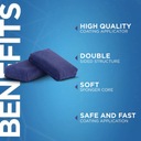 Jego dwustronna struktura oferuje zamszową stronę do precyzyjnej aplikacji i krótką mikrofibrę z drugiej strony.