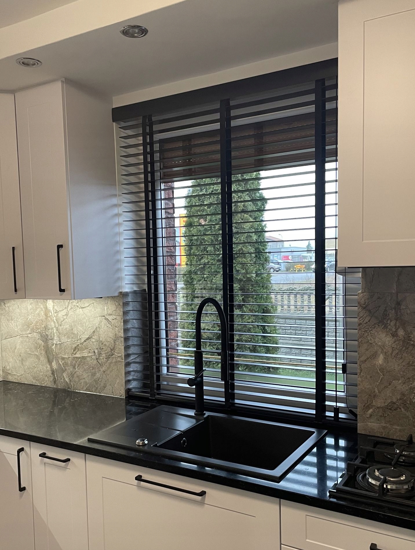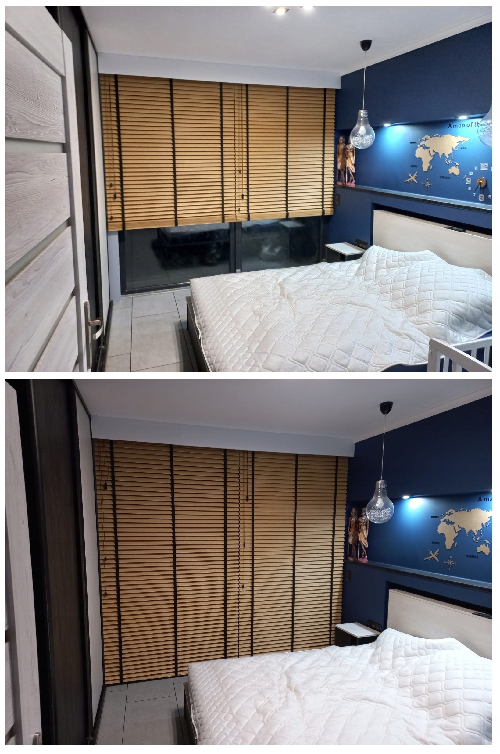 Możemy założyć żaluzję na całą ścianę od sufitu do ziemi bądź od sufitu do parapetu, a po szerokości tak, by zachodziła na ścianę poza wnękę po minimum 5cm z każdej strony.