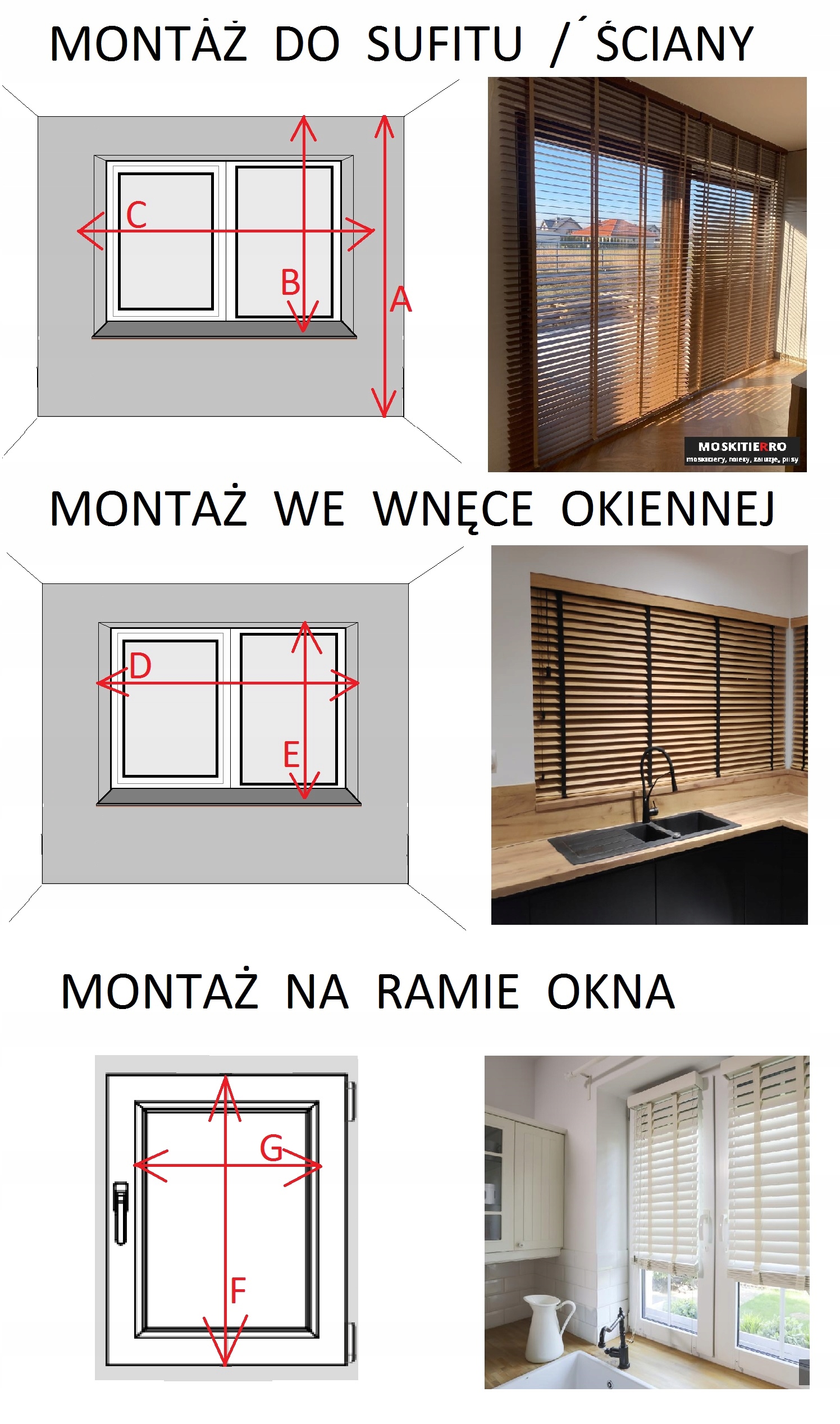 Przy zamówieniu podajemy wysokość całego skrzydła okna F oraz szerokość całkowitą żaluzji G ( szerokość szyby wraz z listwami przyszybowymi).