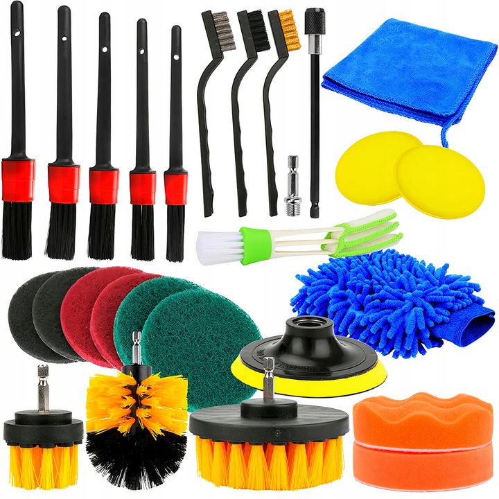 ZESTAW SZCZOTEK DO DETALI SAMOCHODOWYCH - 27 ELEMENTÓW