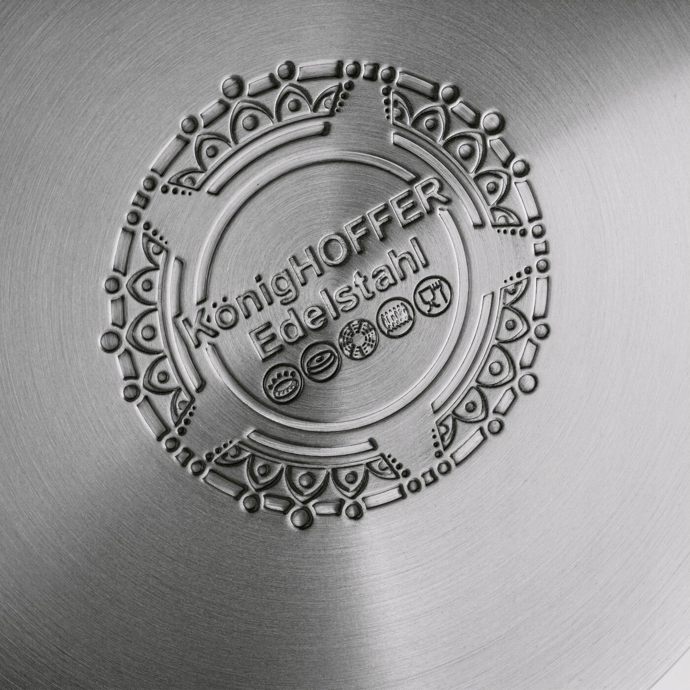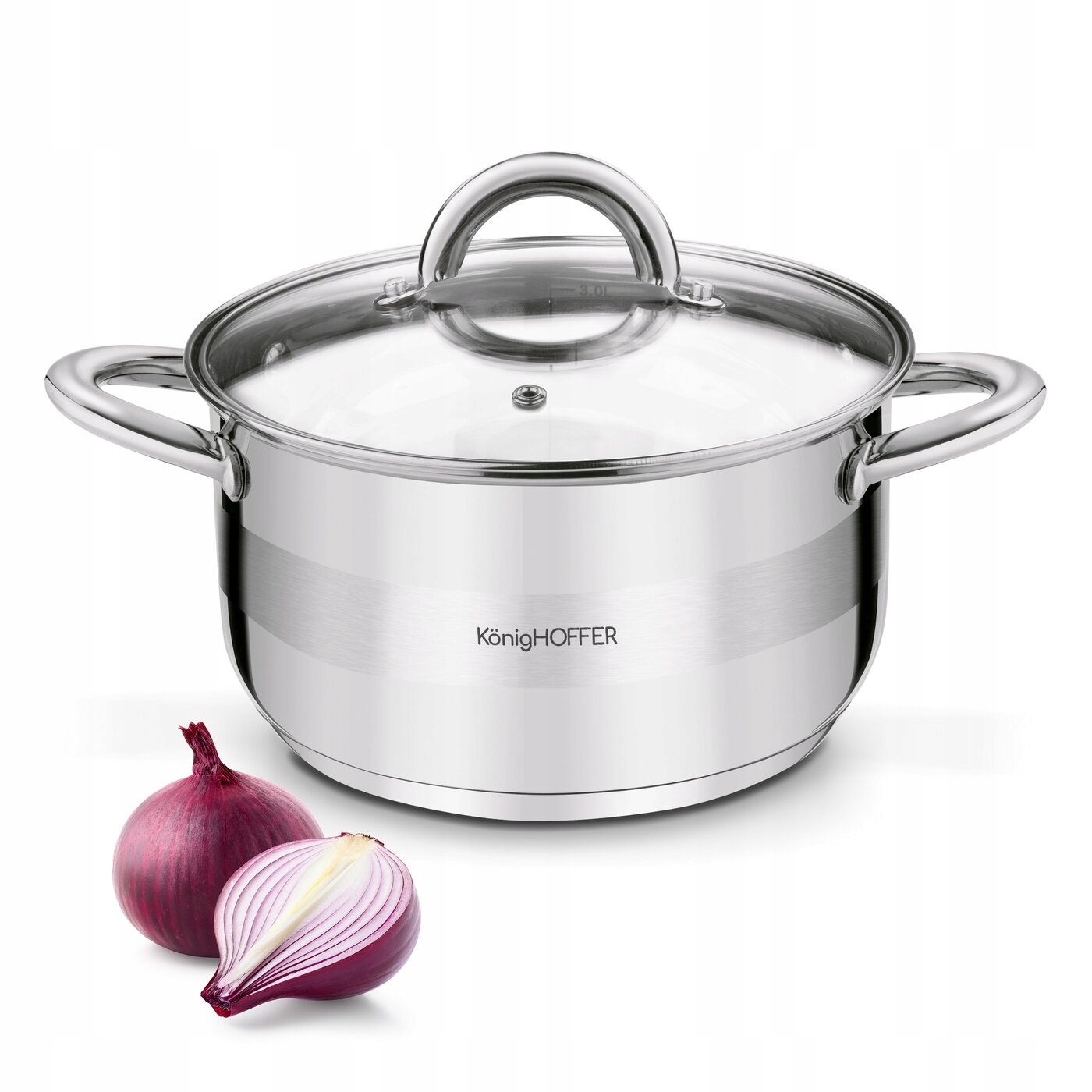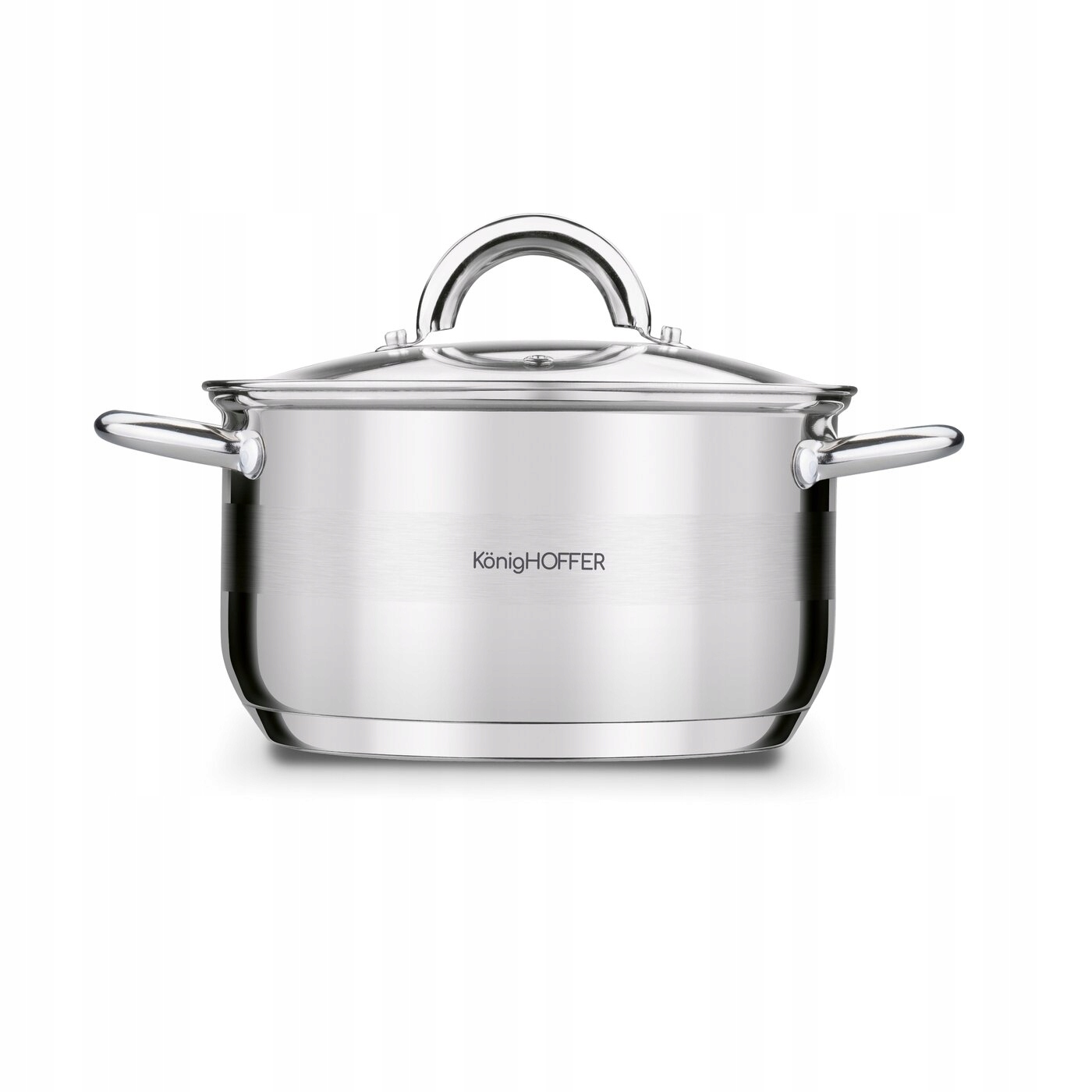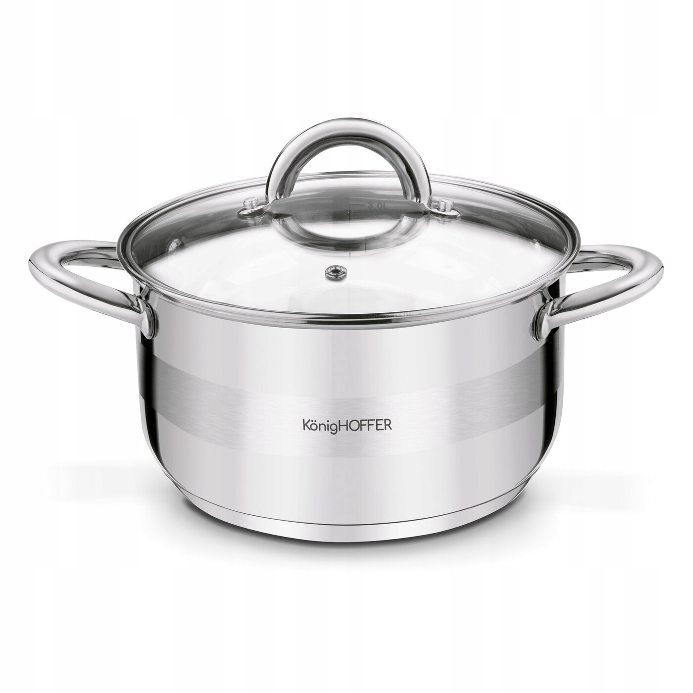 Korpus garnka Konighoffer Faro 3,4 l wykonano ze stali nierdzewnej, która jest łatwa w czyszczeniu oraz doskonale chroni produkt przed uszkodzeniem termicznym lub mechanicznym. Przyrządzane na kilka dni dania możesz bez obaw pozostawić w naczyniu i przechowywać. Solidne wykonanie idzie w tym przypadku w parze z bardzo współczesnym wzornictwem oraz wysokim poziomem funkcjonalności. W odmierzaniu wody na zupę lub makaron wesprze cię umieszczona wewnątrz garnka Faro skala litrażu. Gwarancję bezpiecznego i stabilnego przenoszenia dają dwa solidne uchwyty nitowane ze stali szlachetnej. W komplecie jest też szklana pokrywka z metalowym rantem, nitowaną rączką i odpowietrznikiem pary. W naczyniu możesz dusić jedzenie. Zrobisz to na dowolnym typie kuchenki dzięki warstwowemu dnu. Efektywniej zagospodarujesz ciepło, skrócisz czas robienia posiłku oraz oszczędzisz energię. Co więcej, zaopatrzysz domową kuchnię w garnek nierdzewny na lata.