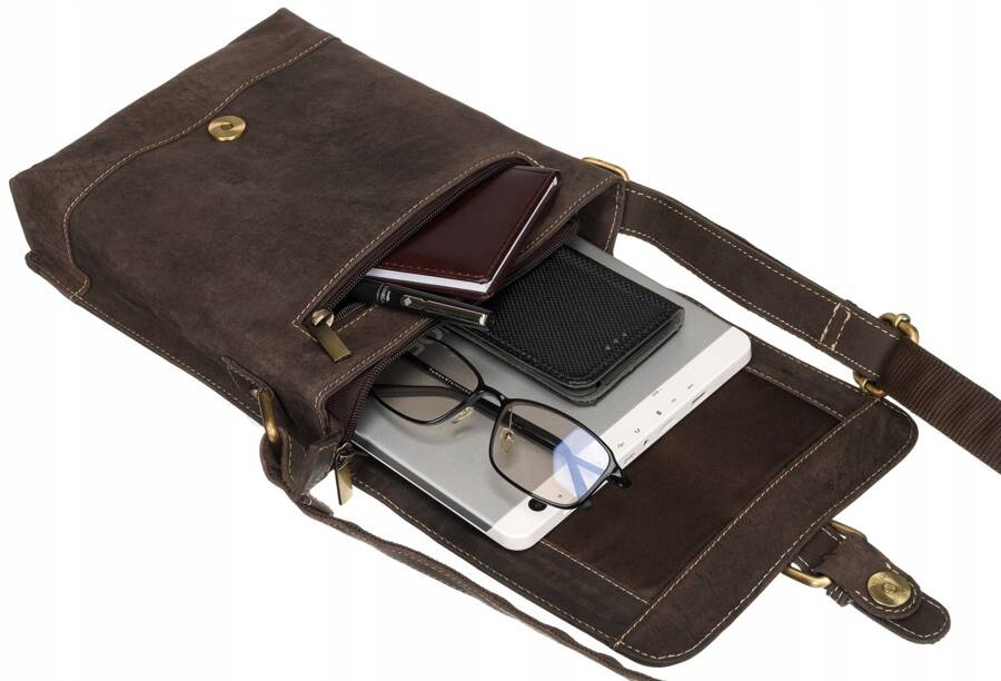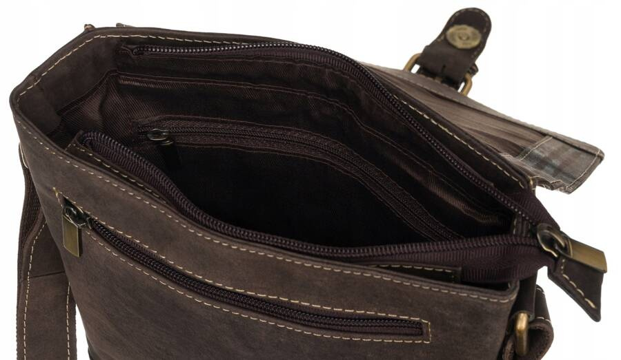 Listonoszka posiada także 2 kieszenie zewnętrzne - jedna z nich została wyszyta pod klapką, druga z tyłu listonoszki. Wszystkie przegródki są na suwak.
