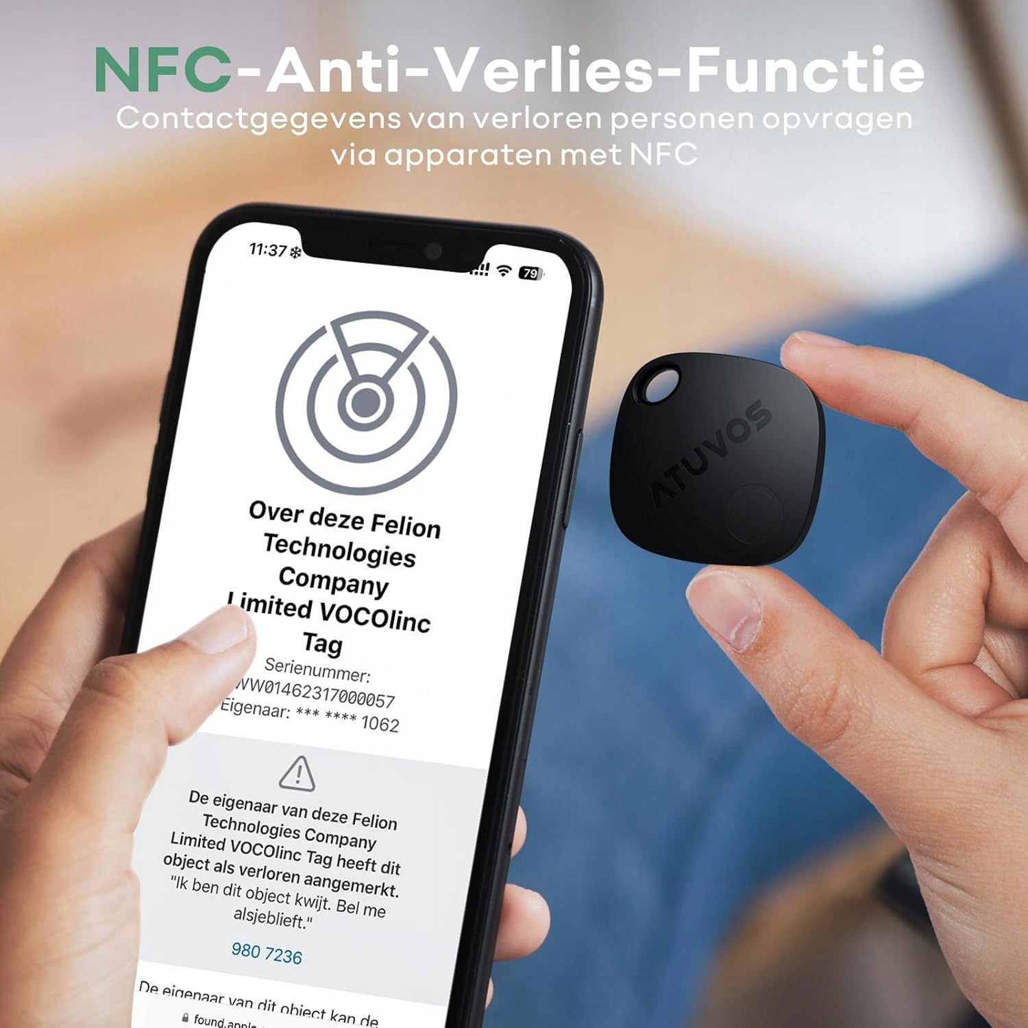 ALARMY POZOSTAWIONE I ZGUBIONE TRYBY - Unikaj utraty swoich rzeczy, przechodząc obok Where is? Apple natychmiast otrzyma powiadomienie o zgubionych przedmiotach. Jeśli lokalizator kluczy ATUVOS zostanie zgubiony, włącz tryb zgubienia w Where is located?, a otrzymasz automatyczne powiadomienie, gdy zostanie wykryty przez sieć Apple FIND MY. (Dodaj swoje dane, aby można było się z Tobą skontaktować, jeśli ktoś zeskanuje NFC Twojego zgubionego ATUVOS)