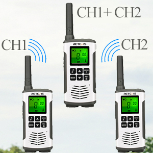 Dwukierunkowe radio RT45 może jednocześnie odbierać sygnały od dwóch towarzyszy na różnych częstotliwościach