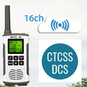 16 kanałów z funkcją redukcji szumów DCS i CTCSS, aby odciąć niechciane sygnały i poprawić jakość głosu