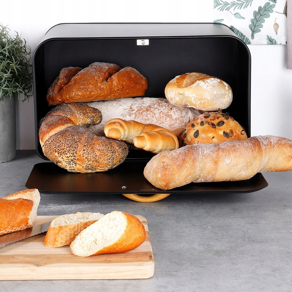 ✅ Wygodne otwieranie i zamykanie - Posiada zamknięcie w formie uchylnej pokrywy. Mechanizm zamknięcia został zaprojektowany z myślą o codziennym użytkowaniu, co sprawia, że otwieranie i zamykanie chlebaka jest szybkie i wygodne.