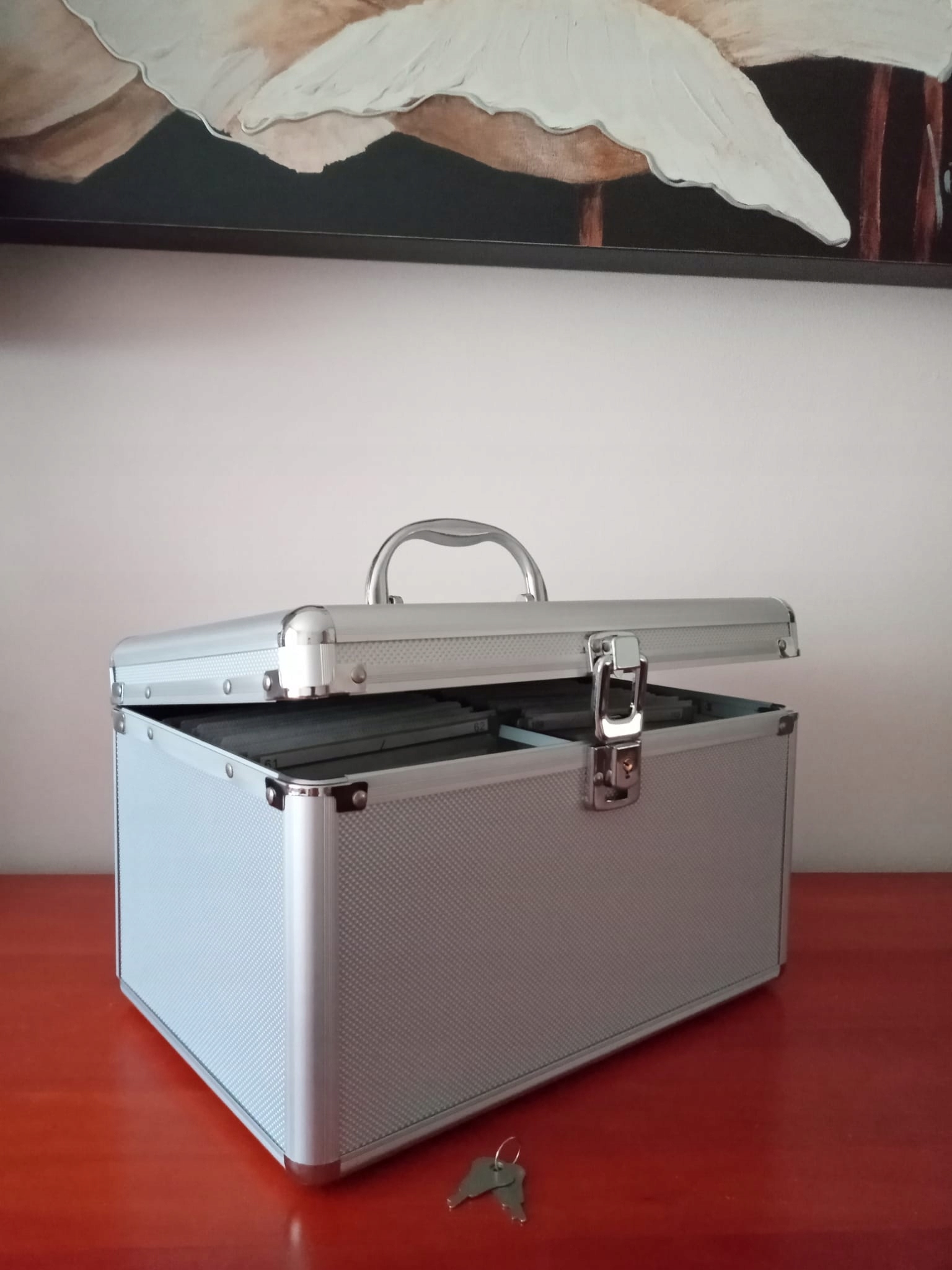 Безопасные конверты из мягкого физелина защищают носители от поцарапать сундук удобно. Корпус защищает пластины от дробления, царапин от пыли и грязью. Он оснащен замком с ключом. Вставки, обработанные физелином, чтобы они не царапали носитель пластинок.