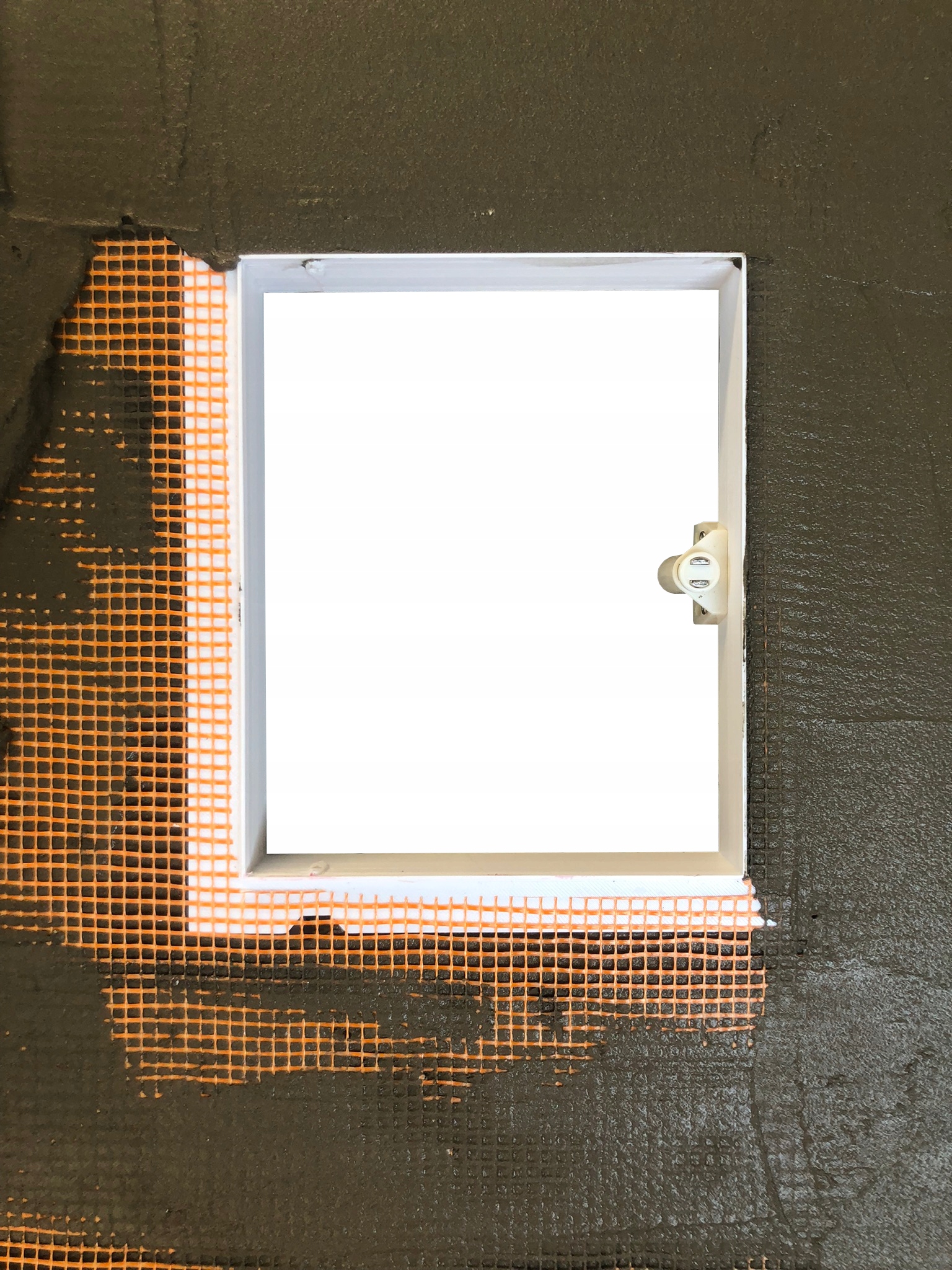Po montażu (w etapie docieplania budynku) drzwiczki uzyskują strukturę i kolor tak jak ściana w której zostały zamontowane