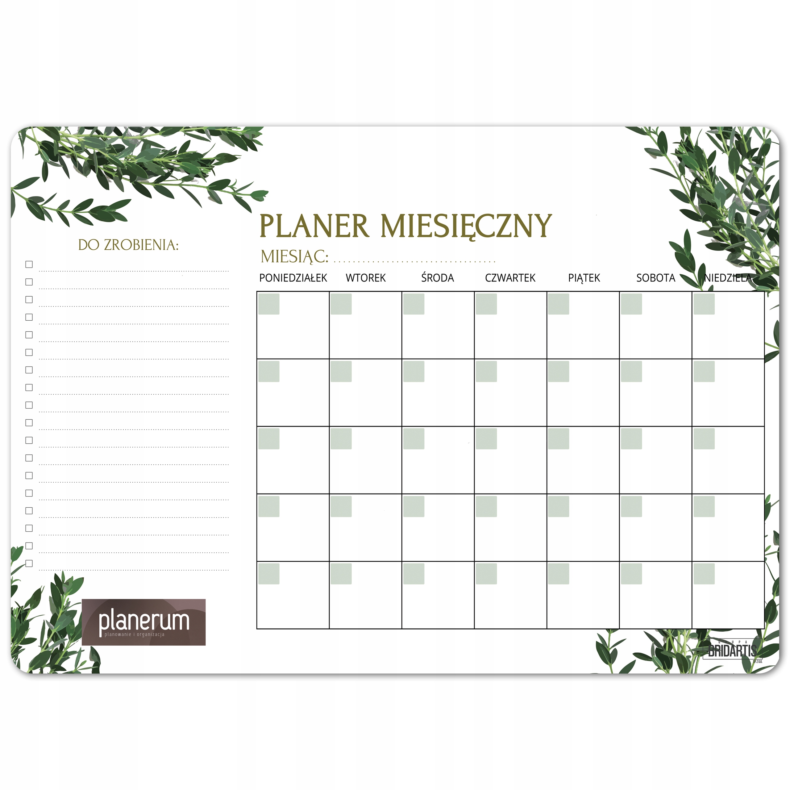 Jest to uniwersalny planer, na którym możesz zaplanować dowolny miesiąc, wpisując jego nazwę oraz numerując poszczególne dni miesiąca w odpowiednim kwadraciku. Dodatkowo po lewej stronie znajduje się miejsce na dodatkowe notatki.