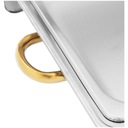 Podgrzewacz do potraw wykonany jest z wytrzymałej i odpornej na zarysowania stali nierdzewnej i spełnia wysokie wymagania higieniczne branży gastronomicznej. Posiada również praktyczne uchwyty do przenoszenia. Pokrywę łatwo zdejmiesz, aby nałożyć sobie jedzenie.