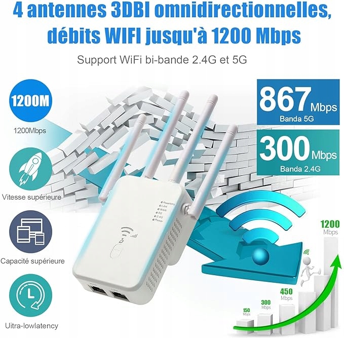 Wzmacniacz WiFi z dużą prędkością transmisji 1200 Mbit/s】