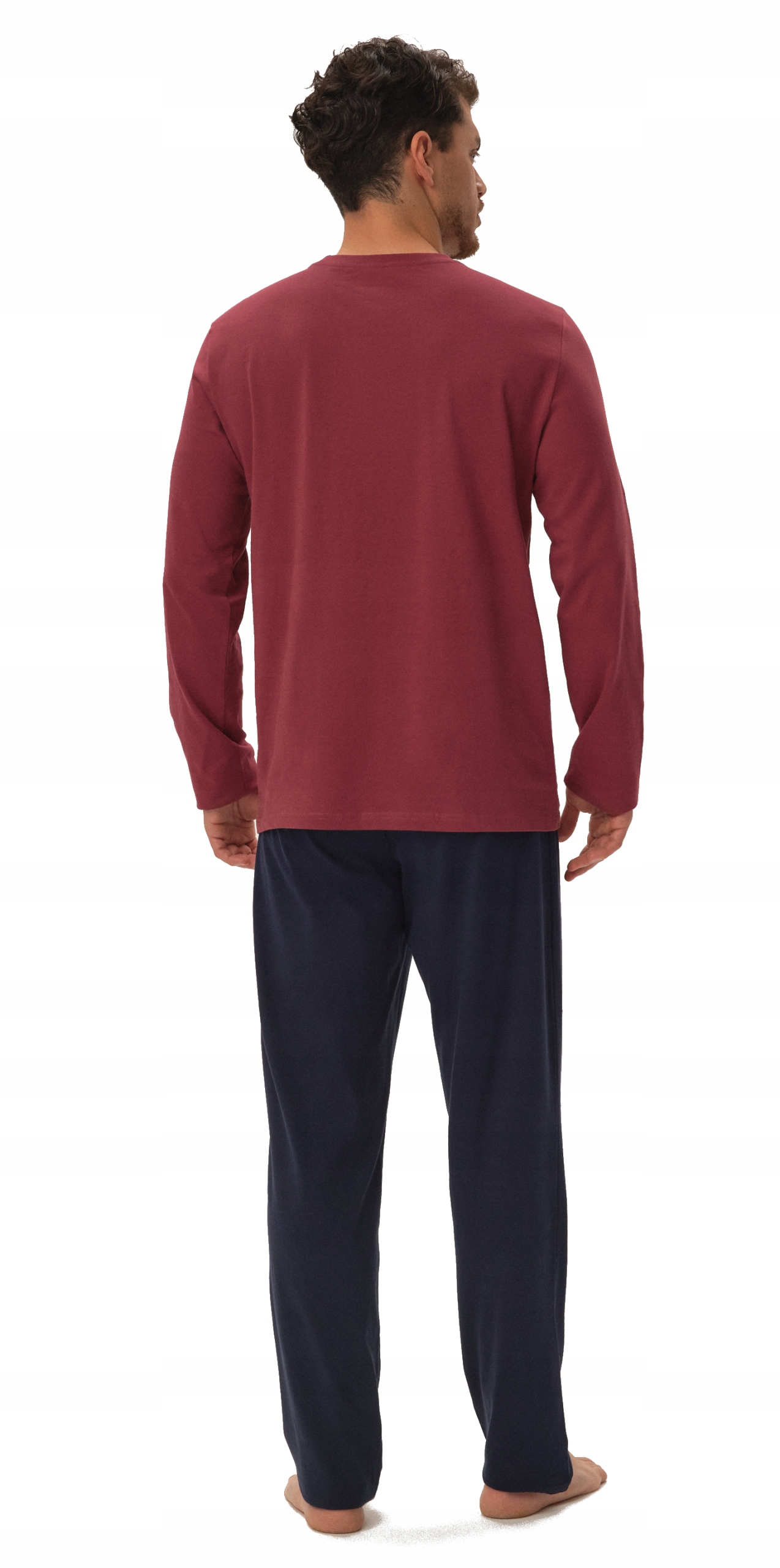 Dwuczęściowa piżama męska Jetson to wygodny zestaw do spania, w sam raz na nieco chłodniejsze noce. Naturalna dzianina bawełniana zapewni Ci ciepło, a jednocześnie zadba o to, aby Twoja skóra mogła oddychać. Swobodny krój, przyjemna dla oka kolorystyka, a także ozdobny napis na górze od piżamy sprawiają, że prezentowany model przypadnie do gustu mężczyznom szukającym komfortowej, a zarazem stylowej odzieży domowej.