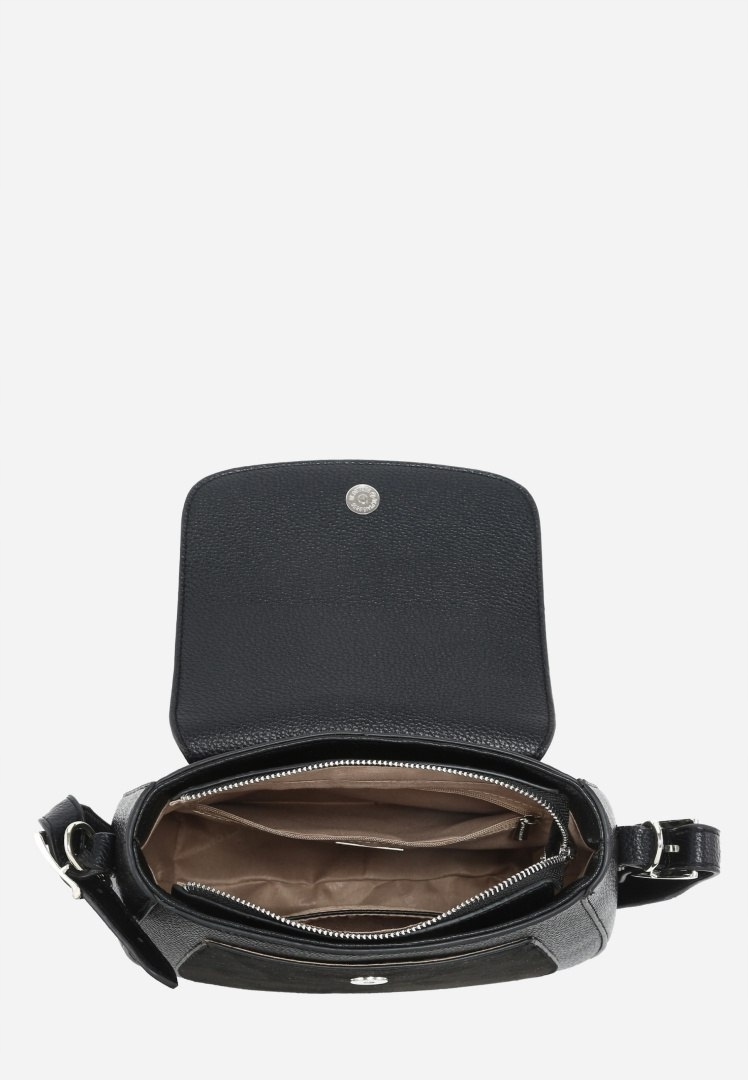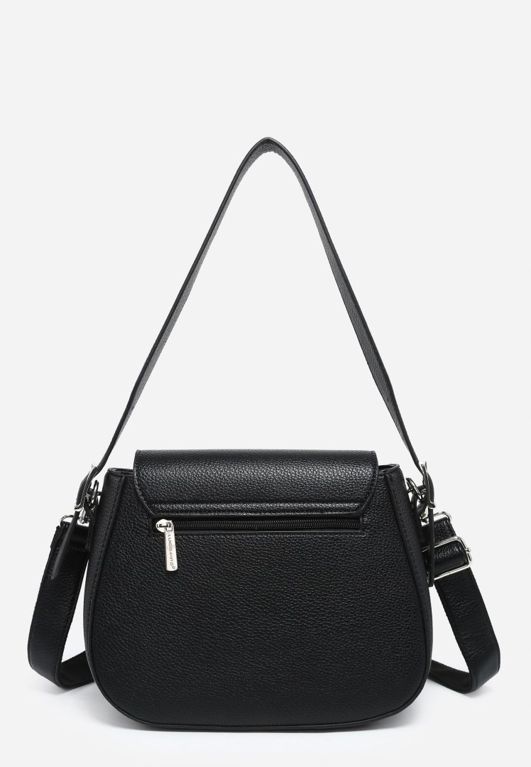 Na przodzie torebki, pod klapą, umieszczono dodatkową wsuwaną kieszonkę, która stanowi idealne miejsce na drobne przedmioty, które chcesz mieć zawsze pod ręką. Z tyłu, znajduje się kieszonka na suwak, dająca szybki dostęp do najczęściej używanych rzeczy.