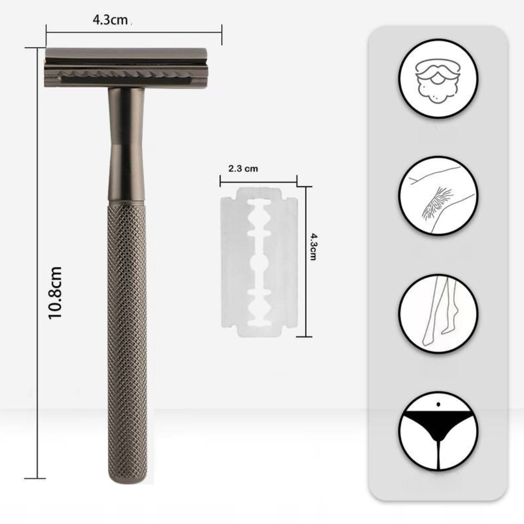Metalowa Maszynka do Golenia na Żyletki to eleganckie i ekologiczne rozwiązanie dla osób ceniących klasyczne metody golenia. Wykonana z wysokiej jakości metalu i wykończona w pięknym odcieniu grafitowo czarnym, maszynka ta łączy w sobie trwałość, styl i funkcjonalność, oferując doskonałe rezultaty golenia.
