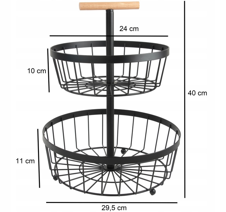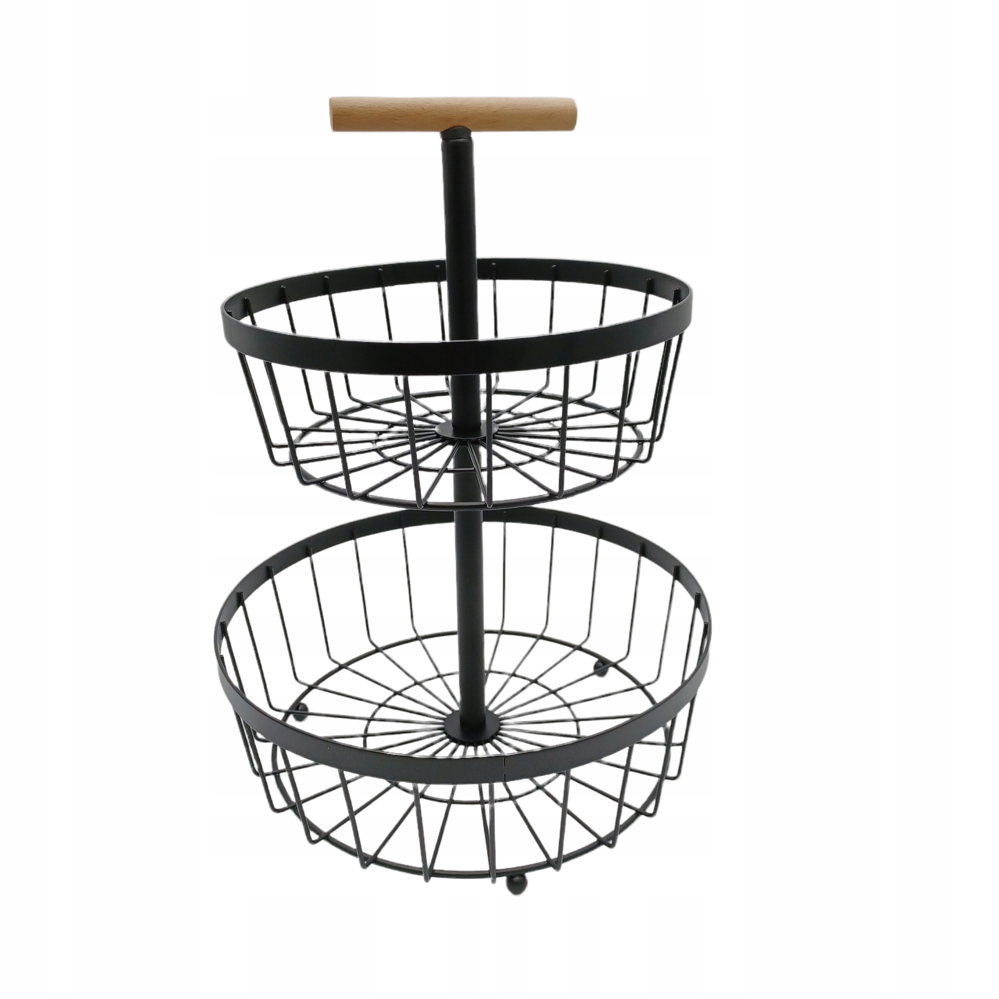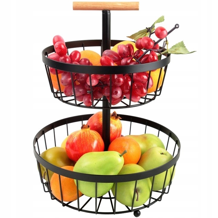 Двухъярусная корзина для фруктов из окрашенных стальных прутьев порошок.