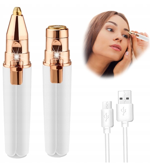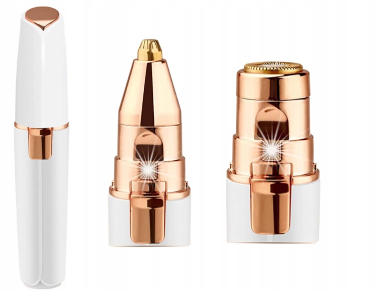 Ten elegancki, biało-złoty trymer do twarzy i brwi pozwoli Ci szybko usunąć niechciane włoski z brwi, okolic ust, policzków czy brody. ✨